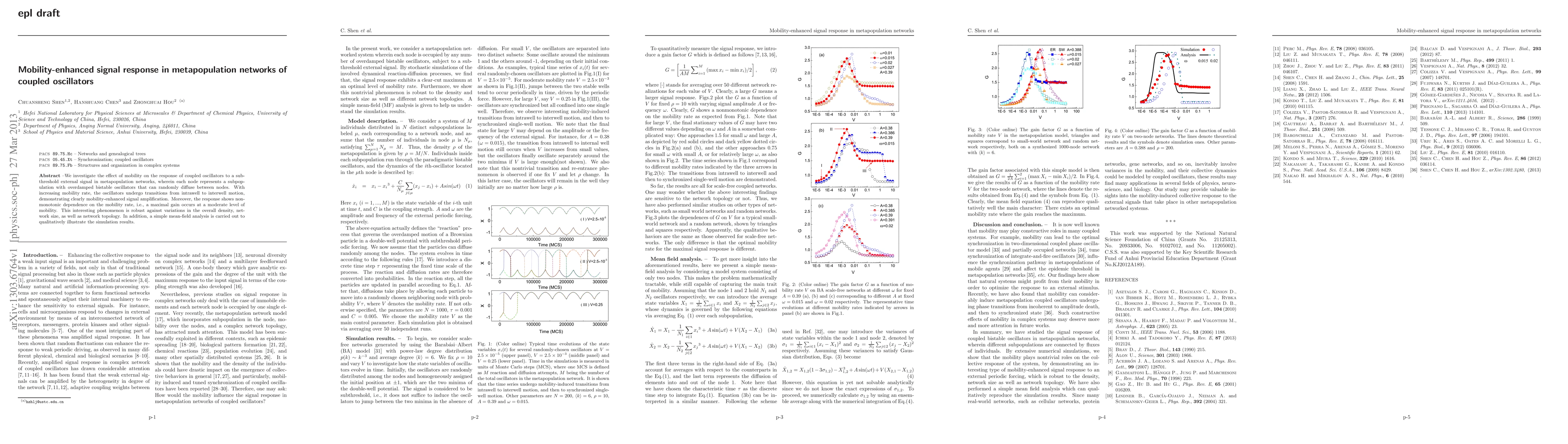 This paper explores how mobility in metapopulation networks of coupled oscillators enhances their response to subthreshold external signals. It finds that increased mobility leads to transitions from intrawell to interwell motion, amplifying signal response, with a maximal gain occurring at a moderate mobility rate, a phenomenon robust across varying network parameters.