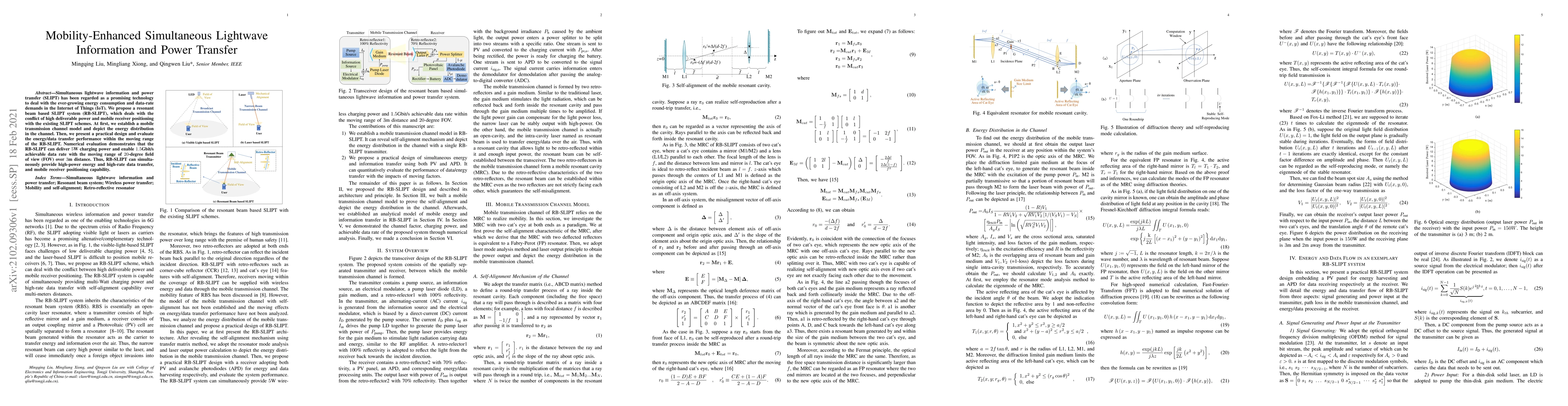 Simultaneous lightwave information and power transfer (SLIPT) has been regarded as a promising technology to deal with the ever-growing energy consumption and data-rate demands in the Internet of Things (IoT). We propose a resonant beam based SLIPT system (RB-SLIPT), which deals with the conflict of high deliverable power and mobile receiver positioning with the existing SLIPT schemes. At first, we establish a mobile transmission channel model and depict the energy distribution in the channel. Then, we present a practical design and evaluate the energy/data transfer performance within the moving range of the RB-SLIPT. Numerical evaluation demonstrates that the RB-SLIPT can deliver 5 W charging power and enable 1.5 Gbit/s achievable data rate with the moving range of 20-degree field of view (FOV) over 3 m distance. Thus, RB-SLIPT can simultaneously provide high-power energy and high-rate data transfer, and mobile receiver positioning capability.