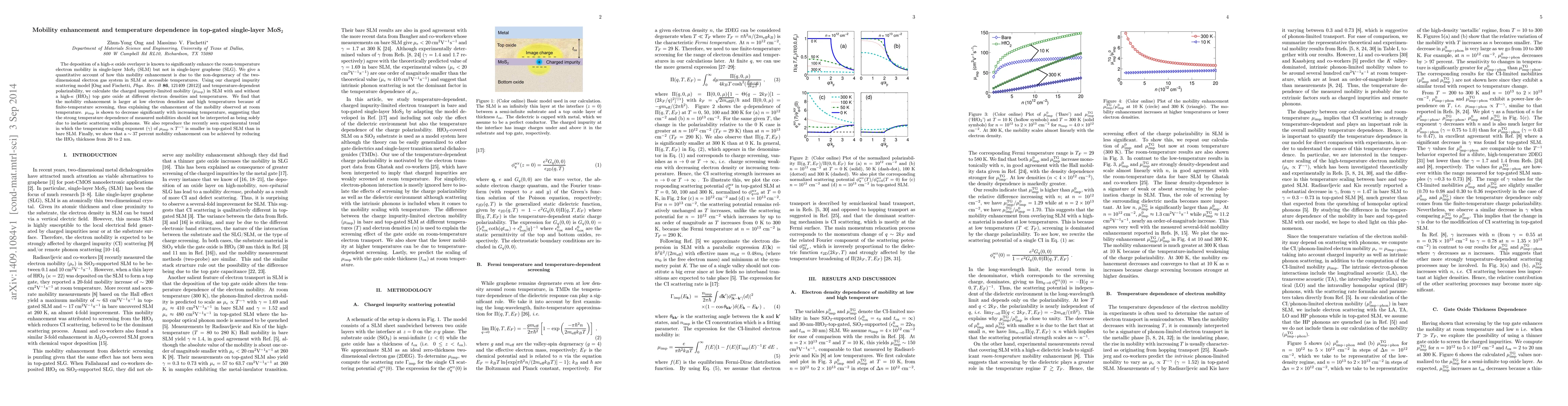 This paper quantitatively analyzes how a high-$\kappa$ oxide overlayer enhances electron mobility in single-layer MoS$_2$ (SLM) due to non-degeneracy effects at accessible temperatures, explaining the observed mobility enhancement at room temperature. It also demonstrates that the mobility decreases with temperature, indicating that temperature dependence is not solely due to phonon scattering.