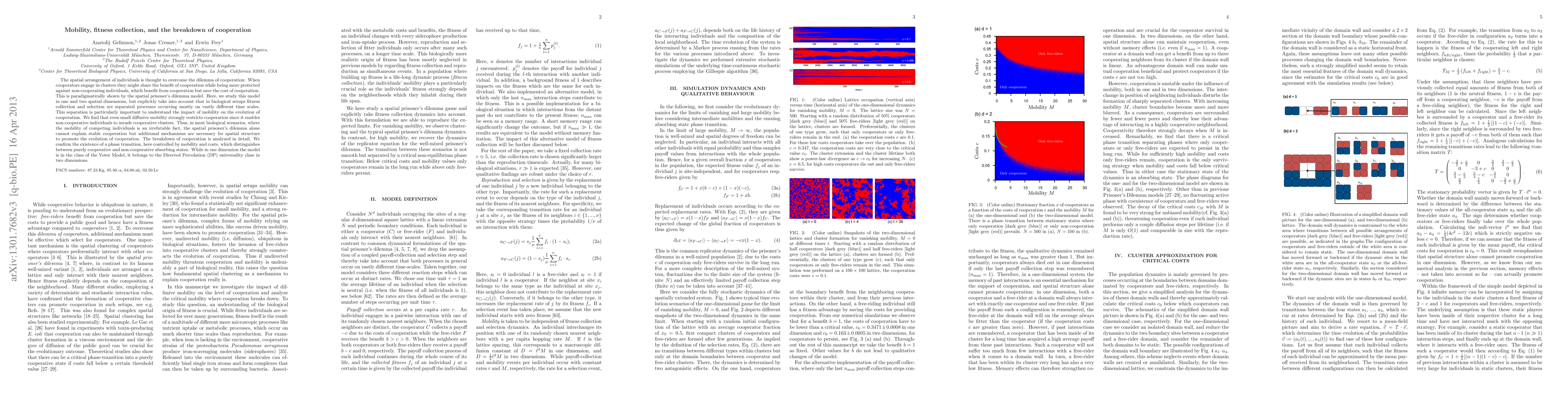 This paper investigates how mobility affects cooperation in spatial prisoner's dilemma models, finding that even slight movement disrupts cooperation by allowing non-cooperators to invade clusters. It concludes that additional mechanisms beyond spatial structure are needed for stable cooperation in mobile biological systems.
