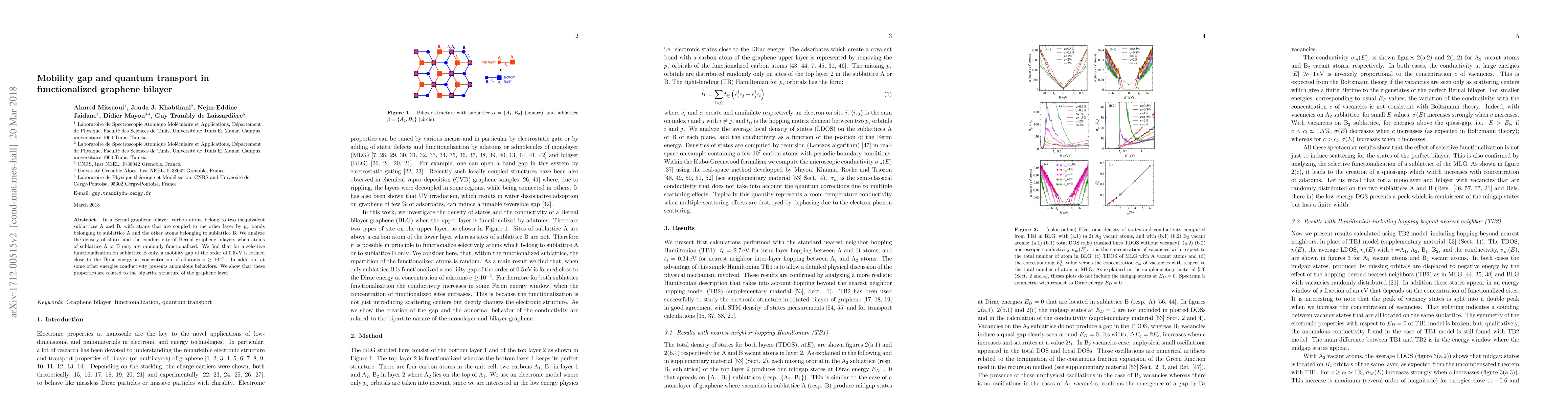 In a Bernal graphene bilayer, carbon atoms belong to two inequivalent sublattices A and B, with atoms that are coupled to the other layer by $p_\sigma$ bonds belonging to sublattice A and the other atoms belonging to sublattice B. We analyze the density of states and the conductivity of Bernal graphene bilayers when atoms of sublattice A or B only are randomly functionalized. We find that for a selective functionalization on sublattice B only, a mobility gap of the order of 0.5 eV is formed close to the Dirac energy at concentration of adatoms c > 0.01. In addition, at some other energies conductivity presents anomalous behaviors. We show that these properties are related to the bipartite structure of the graphene layer.
