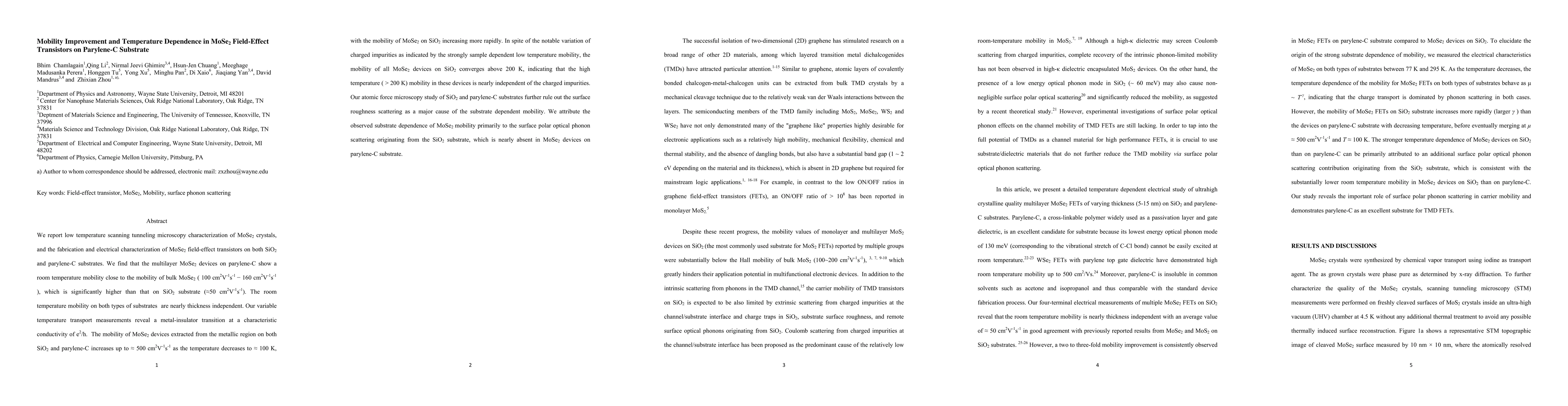 This study investigates the mobility and temperature dependence of MoSe2 field-effect transistors on SiO2 and parylene-C substrates, finding that MoSe2 on parylene-C exhibits significantly higher room temperature mobility (~100-160 cm²V⁻¹s⁻¹) compared to SiO2 (~50 cm²V⁻¹s⁻¹). The mobility increases substantially at low temperatures, with MoSe2 on SiO2 showing a more rapid increase.