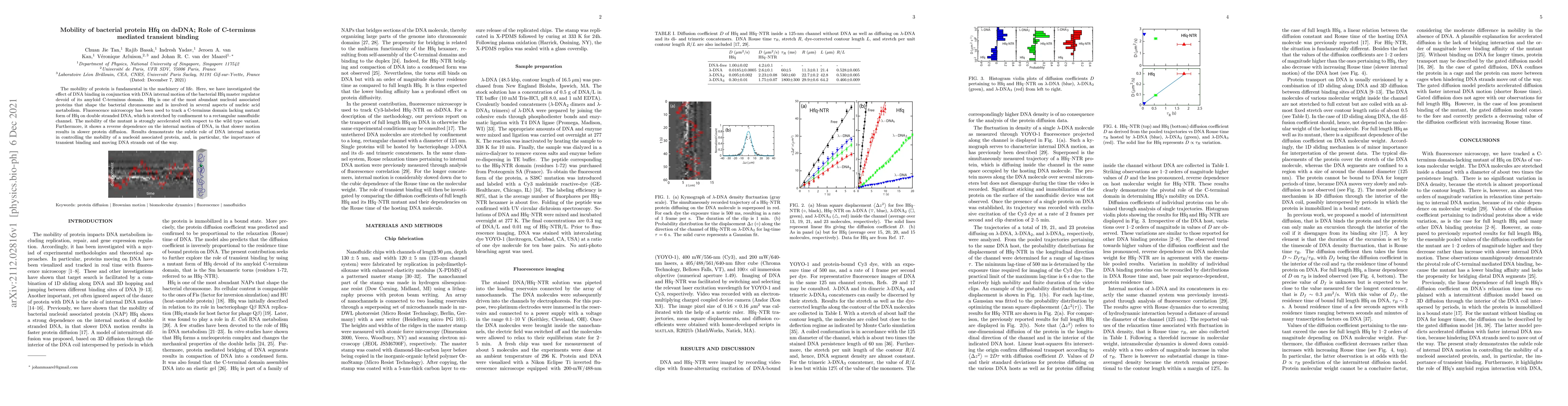 This study investigates the mobility of a bacterial protein Hfq on dsDNA, revealing that a C-terminus domain lacking mutant form moves faster than the wild type. The research highlights the significance of DNA internal motion and transient binding in regulating the protein's mobility.