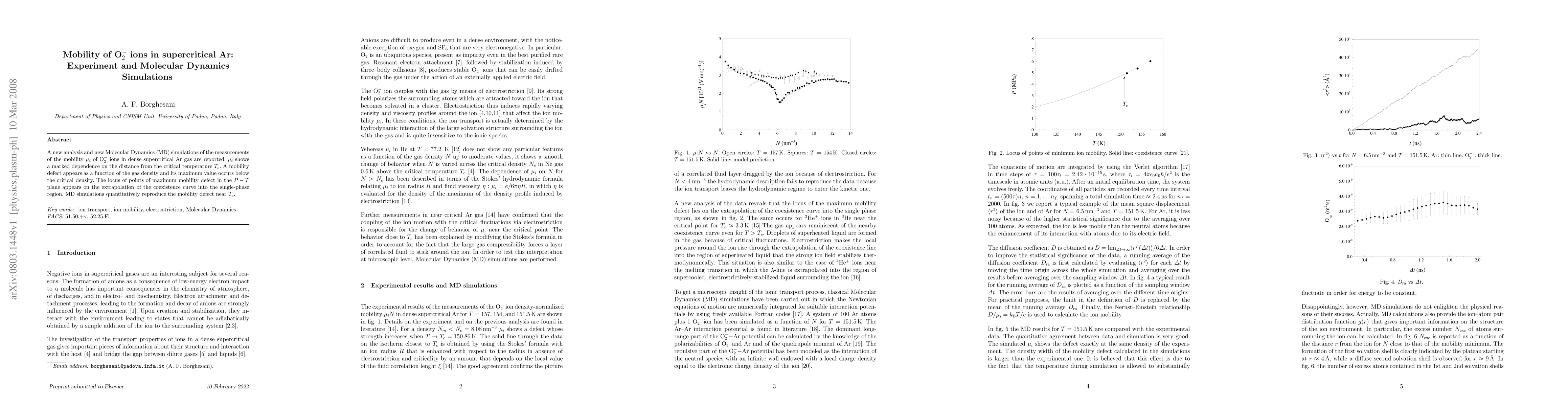A new analysis and new Molecular Dynamics (MD) simulations of the measurements of the mobility $\mu_{i}$ of O$_{2}^{-} $ ions in dense supercritical Ar gas are reported. $\mu_{i}$ shows a marked dependence on the distance from the critical temperature $T_{c}.$ A mobility defect appears as a function of the gas density and its maximum value occurs below the critical density. The locus of points of maximum mobility defect in the $P-T$ plane appears on the extrapolation of the coexistence curve into the single-phase region. MD simulations quantitatively reproduce the mobility defect near $T_{c}.$