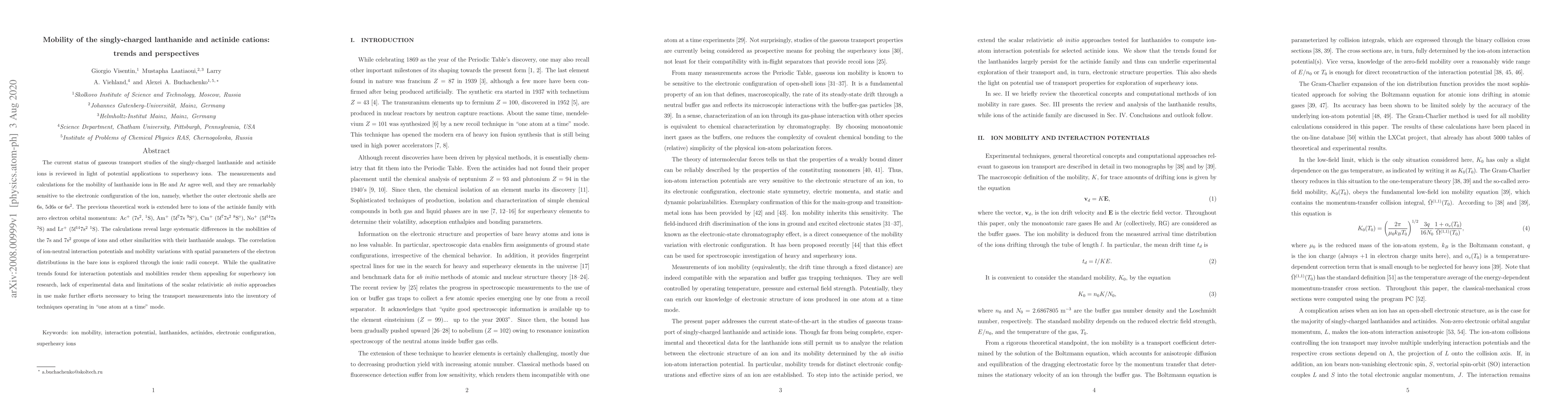 This paper reviews gaseous transport studies of singly-charged lanthanide and actinide ions, focusing on their mobility trends and potential applications to superheavy ions. It finds significant differences in mobility based on electronic configurations and extends theoretical work to actinide ions, highlighting the need for further experimental and computational efforts to refine transport measurements.
