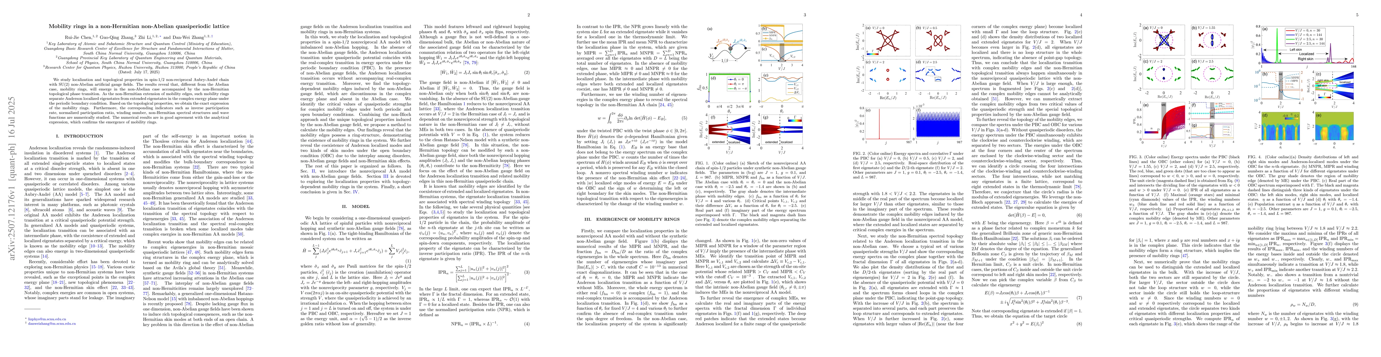 We study localization and topological properties in spin-1/2 non-reciprocal Aubry-Andr\'{e} chain with SU(2) non-Abelian artificial gauge fields. The results reveal that, different from the Abelian case, mobility rings, will emerge in the non-Abelian case accompanied by the non-Hermitian topological phase transition. As the non-Hermitian extension of mobility edges, such mobility rings separate Anderson localized eigenstates from extended eigenstates in the complex energy plane under the periodic boundary condition. Based on the topological properties, we obtain the exact expression of the mobility rings. Furthermore, the corresponding indicators such as inverse participation rate, normalized participation ratio, winding number, non-Hermitian spectral structures and wave functions are numerically studied. The numerical results are in good agreement with the analytical expression, which confirms the emergence of mobility rings.