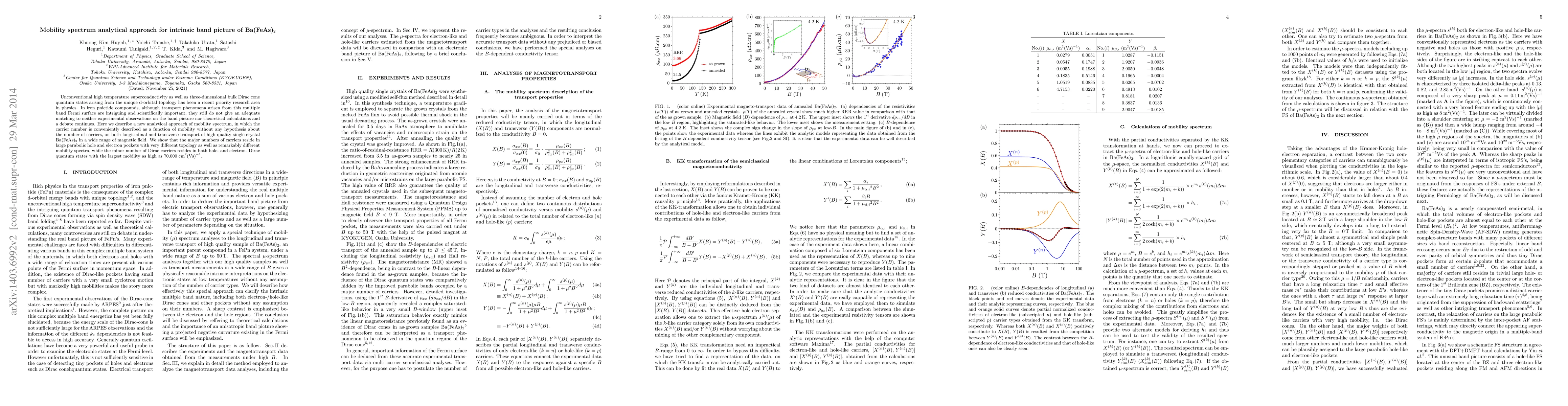 Unconventional high temperature superconductivity as well as three-dimensional bulk Dirac cone quantum states arising from the unique d-orbital topology has been a recent priority research area in physics. In iron pnictide compounds, although transport phenomena arisen from this multiple band Fermi surface are intriguing and scientifically important, they still do not give an adequate matching to neither experimental observations on the band picture nor theoretical calculations and a debate continues. Here we describe a new analytical approach of mobility spectrum, in which the carrier number is conveniently described as a function of mobility without any hypothesis about the number of carriers, on both longitudinal and transverse transport of high quality single crystal Ba(FeAs)$_2$ in a wide range of magnetic field. We show that the major numbers of carriers reside in large parabolic hole and electron pockets with very different topology as well as remarkably different mobility spectra, while the minor number of Dirac carriers resides in both hole- and electron- Dirac quantum states with the largest mobility as high as 70,000 cm$^2$(Vs)$^{-1}$.