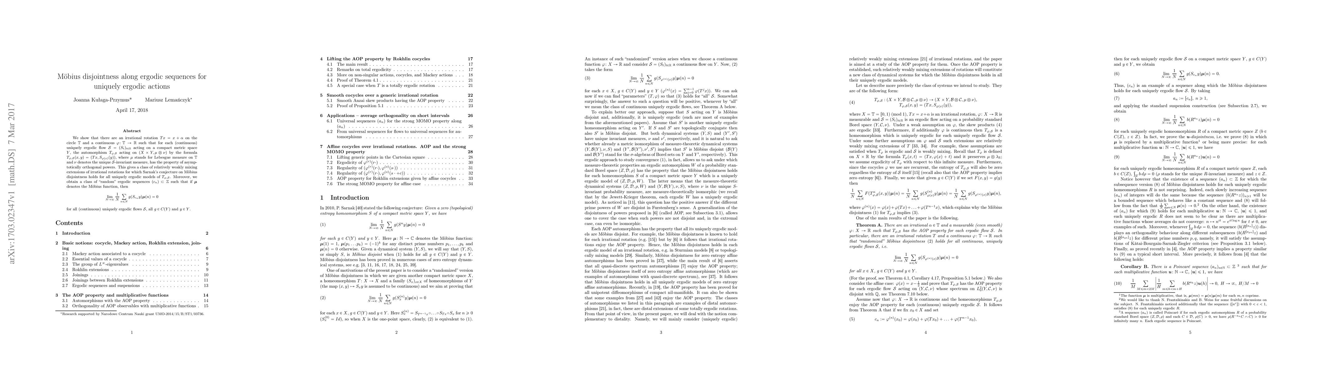 This paper demonstrates that an irrational rotation combined with a continuous function and a uniquely ergodic flow results in a system with asymptotically orthogonal powers, supporting Sarnak's conjecture on Möbius disjointness. It also identifies a class of ergodic sequences that satisfy Möbius disjointness for all uniquely ergodic models of the constructed system.