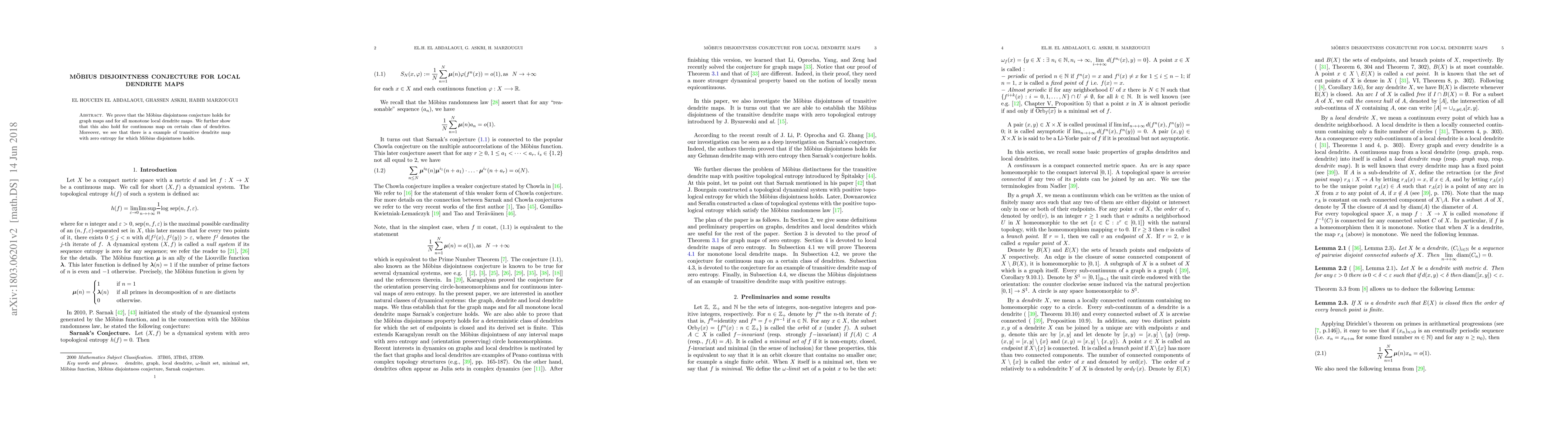 The paper proves the M\"obius disjointness conjecture for graph maps and monotone local dendrite maps, and extends this result to continuous maps on a specific class of dendrites. Additionally, it identifies a transitive dendrite map with zero entropy that still satisfies the conjecture.