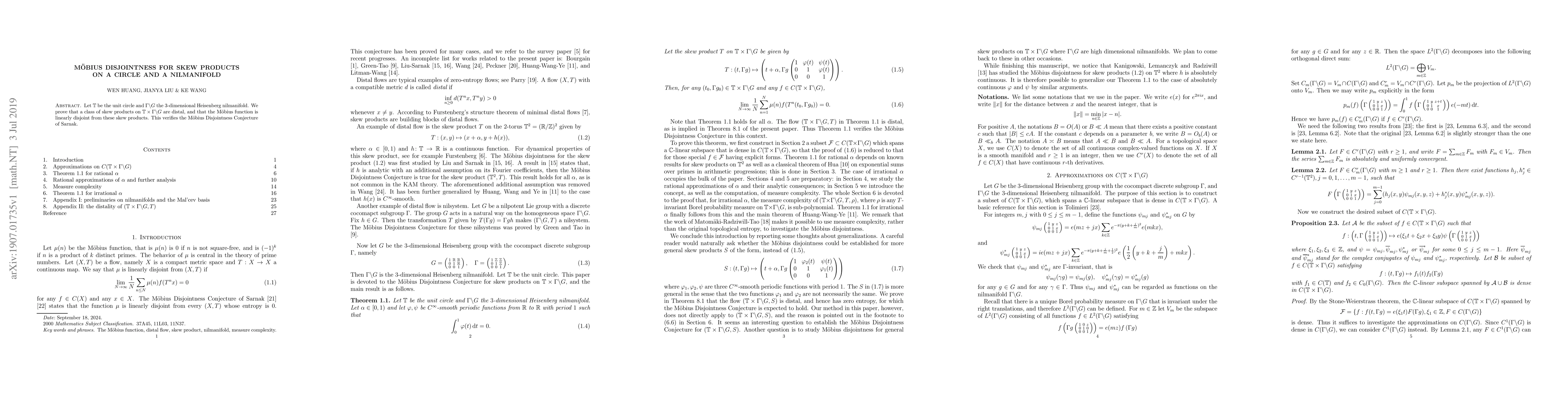 This paper proves that certain skew products on the unit circle and a 3-dimensional Heisenberg nilmanifold are distal and that the Möbius function is linearly disjoint from these products, verifying Sarnak's Möbius Disjointness Conjecture.