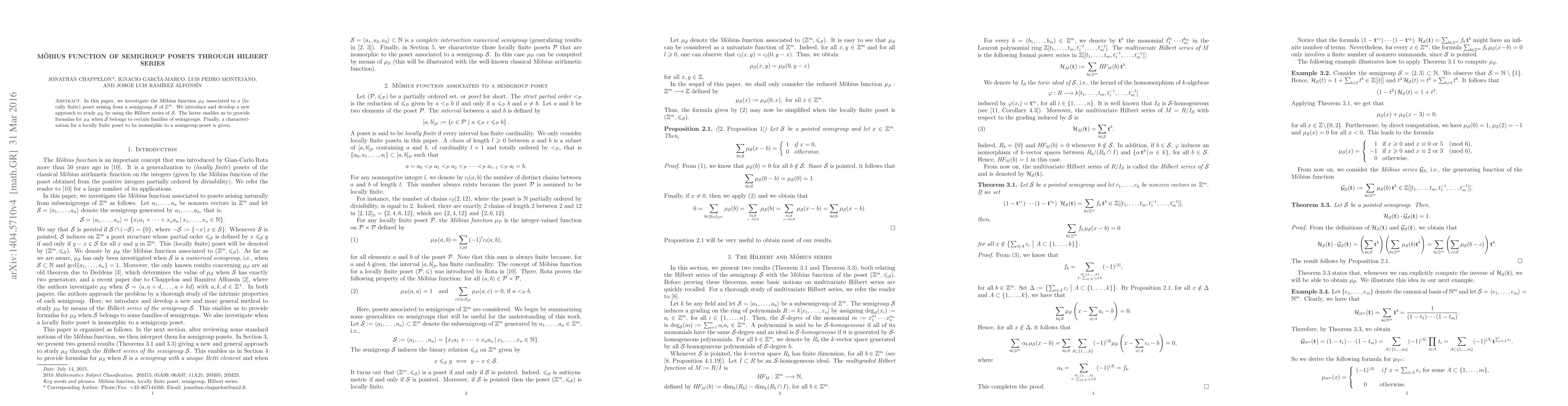 The paper investigates the Möbius function μ_S associated with a poset arising from a semigroup S of ℤ^m, using Hilbert series to develop a new approach for studying μ_S and providing formulas for it in specific families of semigroups.
