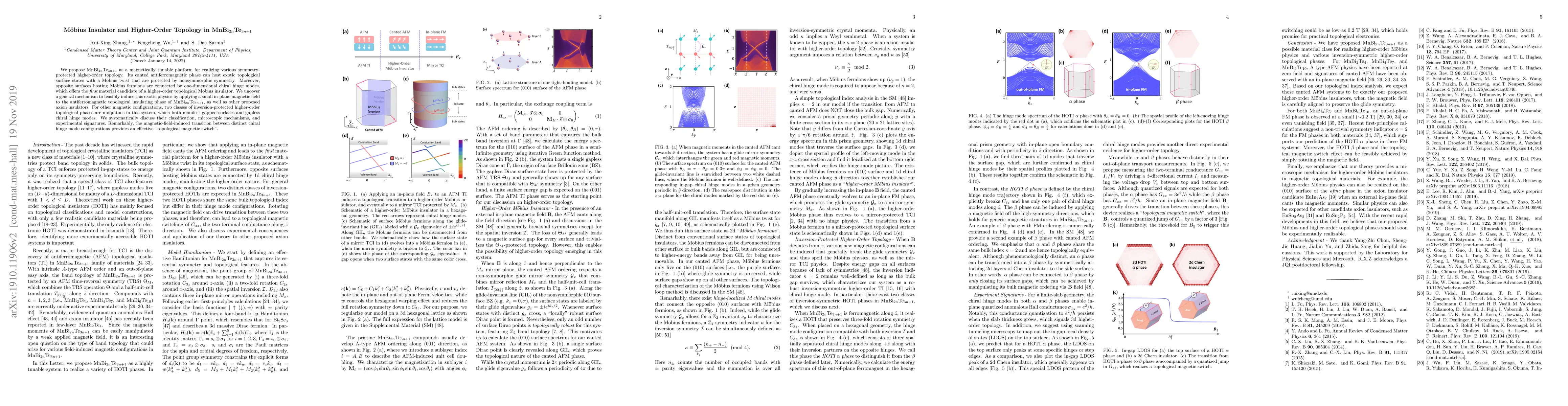 We propose MnBi$_{2n}$Te$_{3n+1}$ as a magnetically tunable platform for realizing various symmetry-protected higher-order topology. Its canted antiferromagnetic phase can host exotic topological surface states with a M\"obius twist that are protected by nonsymmorphic symmetry. Moreover, opposite surfaces hosting M\"obius fermions are connected by one-dimensional chiral hinge modes, which offers the first material candidate of a higher-order topological M\"obius insulator. We uncover a general mechanism to feasibly induce this exotic physics by applying a small in-plane magnetic field to the antiferromagnetic topological insulating phase of MnBi$_{2n}$Te$_{3n+1}$, as well as other proposed axion insulators. For other magnetic configurations, two classes of inversion-protected higher-order topological phases are ubiquitous in this system, which both manifest gapped surfaces and gapless chiral hinge modes. We systematically discuss their classification, microscopic mechanisms, and experimental signatures. Remarkably, the magnetic-field-induced transition between distinct chiral hinge mode configurations provides an effective "topological magnetic switch".
