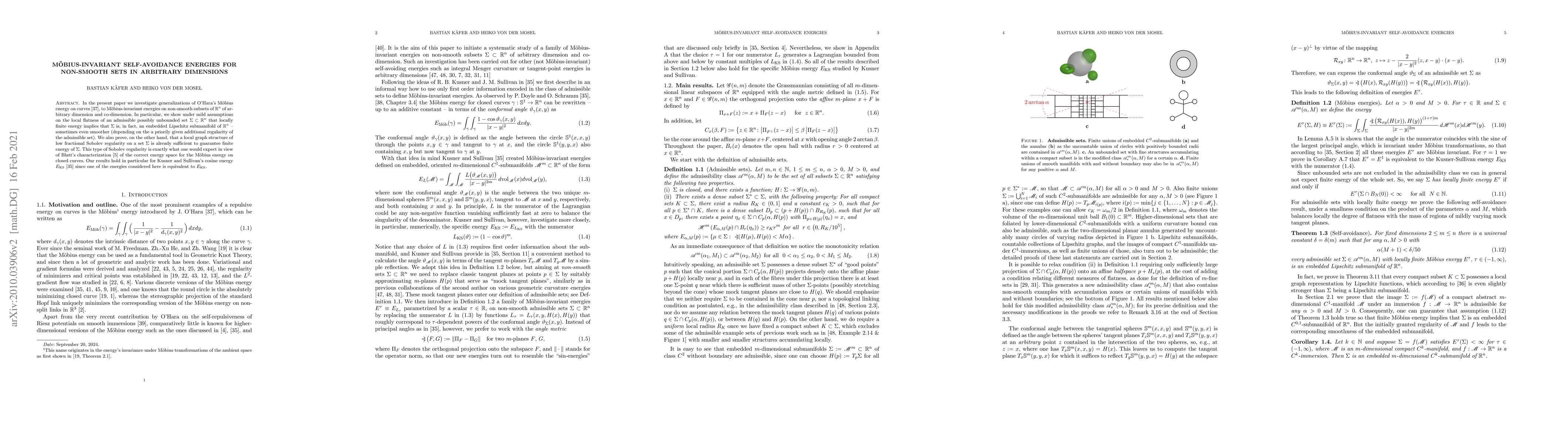 In the present paper we investigate generalizations of O'Hara's M\"obius energy on curves \cite{ohara_1991a}, to M\"obius-invariant energies on non-smooth subsets of $\R^n$ of arbitrary dimension and co-dimension. In particular, we show under mild assumptions on the local flatness of an admissible possibly unbounded set $\Sigma\subset \R^n$ that locally finite energy implies that $\Sigma$ is, in fact, an embedded Lipschitz submanifold of $\R^n$ -- sometimes even smoother (depending on the a priorily given additional regularity of the admissible set). We also prove, on the other hand, that a local graph structure of low fractional Sobolev regularity on a set $\Sigma$ is already sufficient to guarantee finite energy of $\Sigma$. This type of Sobolev regularity is exactly what one would expect in view of Blatt's characterization \cite{blatt_2012a} of the correct energy space for the M\"obius energy on closed curves. Our results hold in particular for Kusner and Sullivan's cosine energy $E_\textnormal{KS}$ \cite{kusner-sullivan_1997} since one of the energies considered here is equivalent to $E_\textnormal{KS}$.