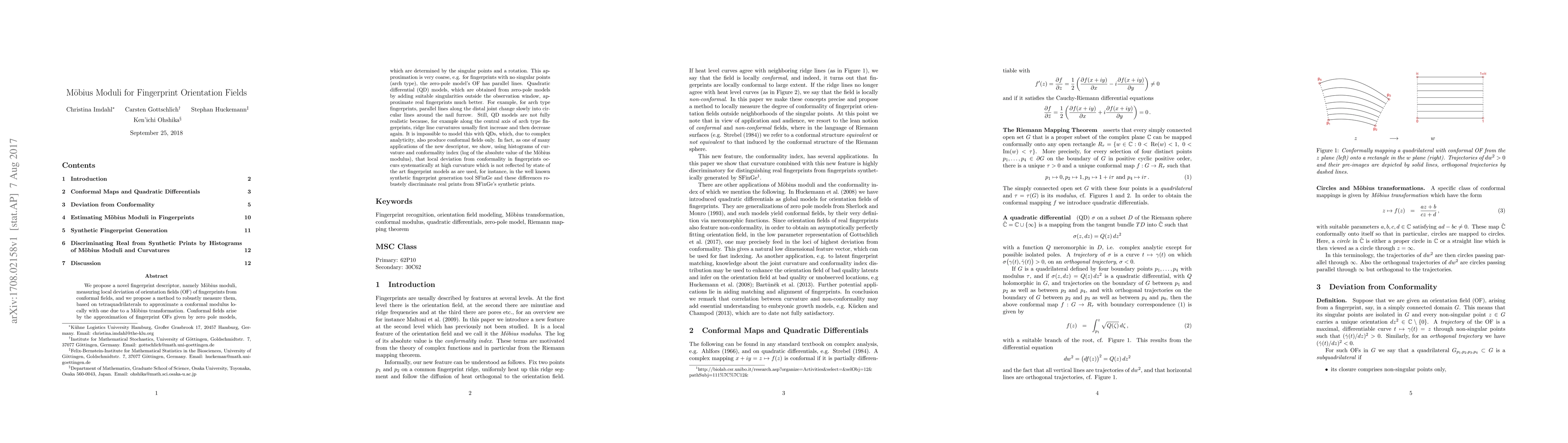 Researchers propose a novel fingerprint descriptor, M"obius moduli, to measure local deviation from conformal fields, improving the accuracy of fingerprint recognition compared to existing models.