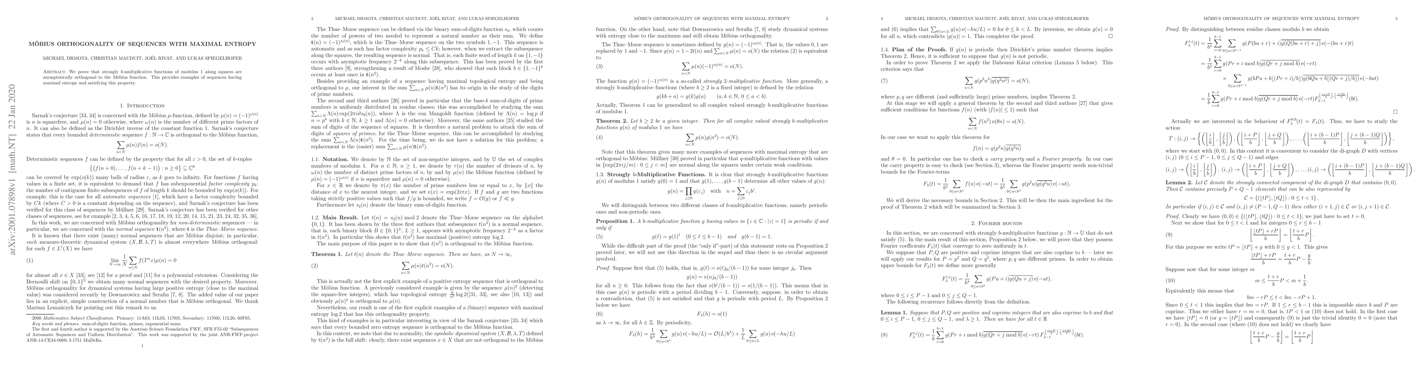 Summary: The paper proves that strongly $b$-multiplicative functions of modulus $1$ along squares are asymptotically orthogonal to the Möbius function, illustrating sequences with maximal entropy that exhibit this property.