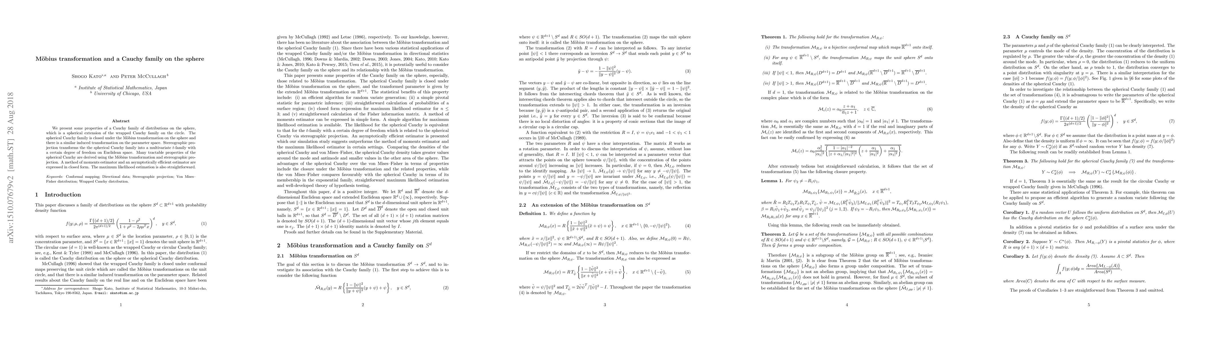 This paper explores the properties of a Cauchy family on the sphere, extending the wrapped Cauchy family from the circle. It demonstrates the family's invariance under Möbius transformations and derives tractable properties using stereographic projection, leading to closed-form expressions for method of moments, asymptotically efficient, and maximum likelihood estimators.