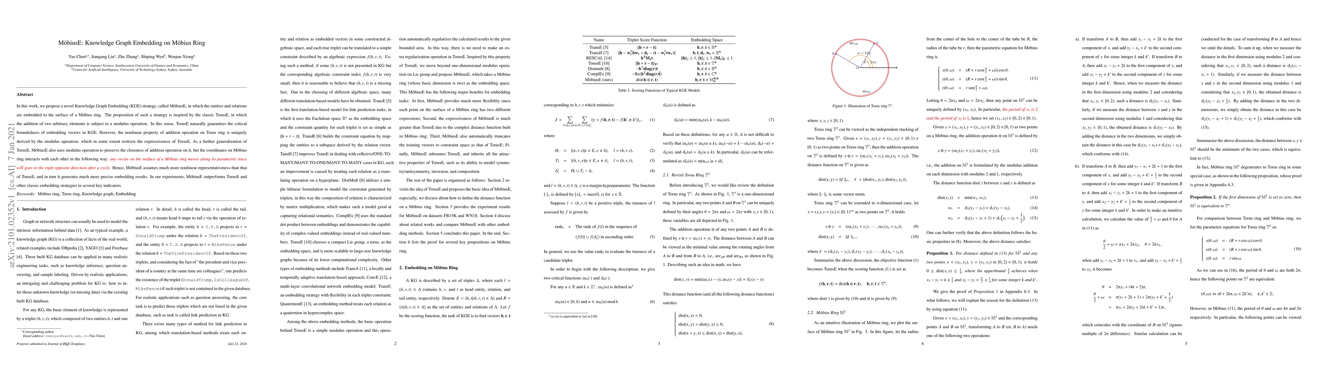 M\"{o}biusE proposes a novel Knowledge Graph Embedding strategy that embeds entities and relations on the surface of a M\"{o}bius ring, offering enhanced nonlinear representativeness compared to TorusE. Experimental results show that M\"{o}biusE outperforms TorusE and other classic embedding methods in key performance metrics.