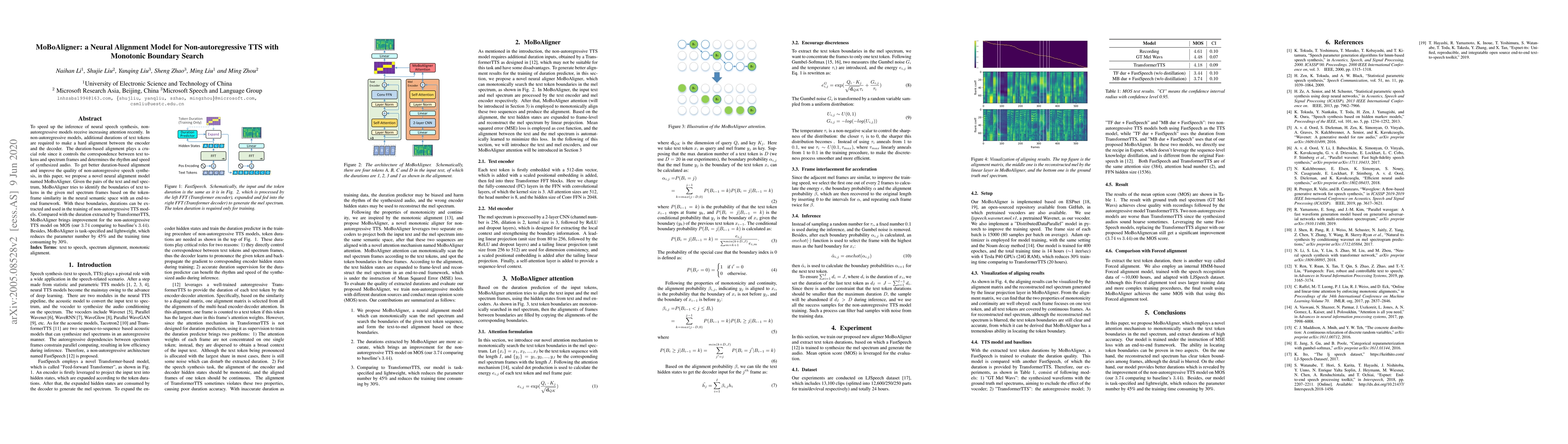 MoboAligner is a novel neural alignment model designed to enhance non-autoregressive text-to-speech (TTS) systems by identifying text token boundaries in mel spectrum frames, improving alignment and synthesis quality. It achieves better results than TransformerTTS, with a 3.74 MOS score compared to FastSpeech's 3.44, while being lightweight and reducing parameters and training time by 45% and 30%, respectively.