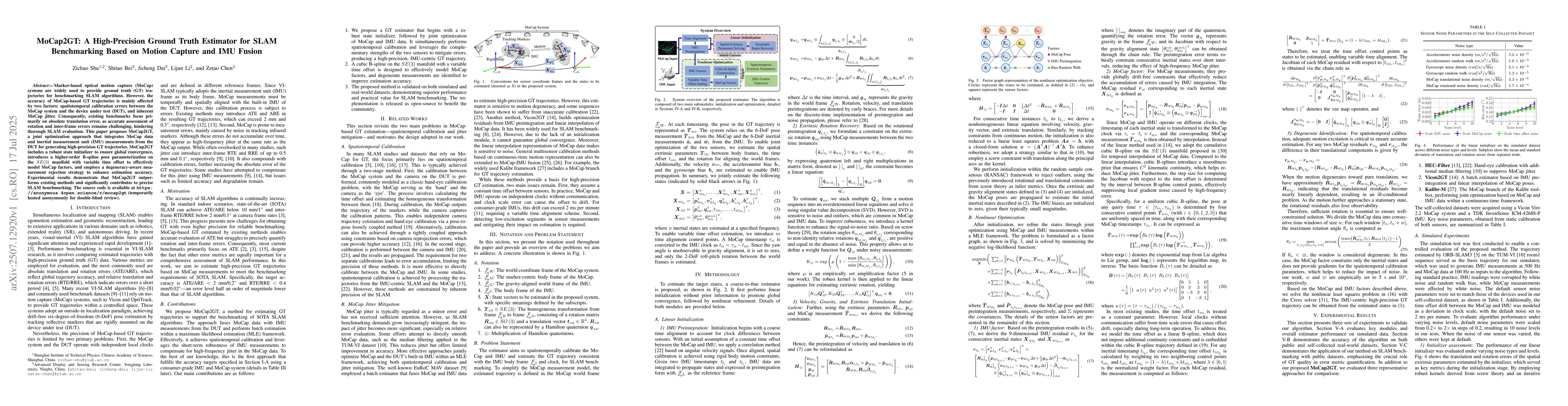 Marker-based optical motion capture (MoCap) systems are widely used to provide ground truth (GT) trajectories for benchmarking SLAM algorithms. However, the accuracy of MoCap-based GT trajectories is mainly affected by two factors: spatiotemporal calibration errors between the MoCap system and the device under test (DUT), and inherent MoCap jitter. Consequently, existing benchmarks focus primarily on absolute translation error, as accurate assessment of rotation and inter-frame errors remains challenging, hindering thorough SLAM evaluation. This paper proposes MoCap2GT, a joint optimization approach that integrates MoCap data and inertial measurement unit (IMU) measurements from the DUT for generating high-precision GT trajectories. MoCap2GT includes a robust state initializer to ensure global convergence, introduces a higher-order B-spline pose parameterization on the SE(3) manifold with variable time offset to effectively model MoCap factors, and employs a degeneracy-aware measurement rejection strategy to enhance estimation accuracy. Experimental results demonstrate that MoCap2GT outperforms existing methods and significantly contributes to precise SLAM benchmarking. The source code is available at https://anonymous.4open.science/r/mocap2gt (temporarily hosted anonymously for double-blind review).