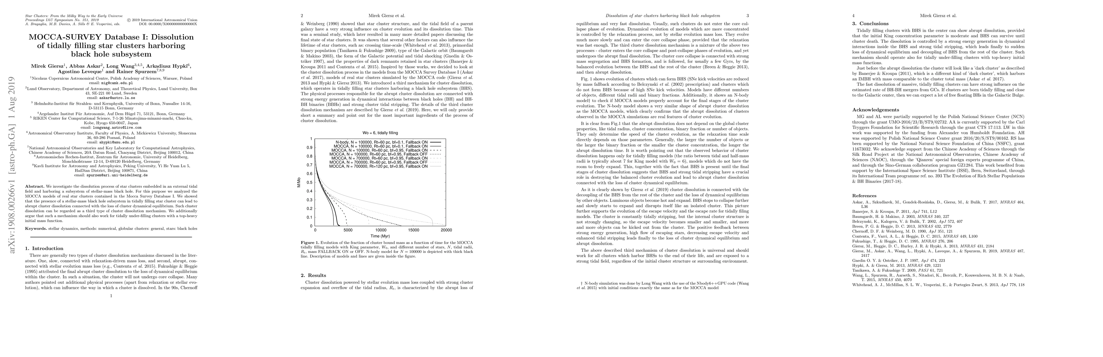 The MOCCA-SURVEY Database I investigates the dissolution of star clusters with a stellar-mass black hole subsystem under tidal forces, revealing a third dissolution mechanism linked to the loss of dynamical equilibrium. This mechanism is also applicable to tidally under-filling clusters with a top-heavy initial mass function.