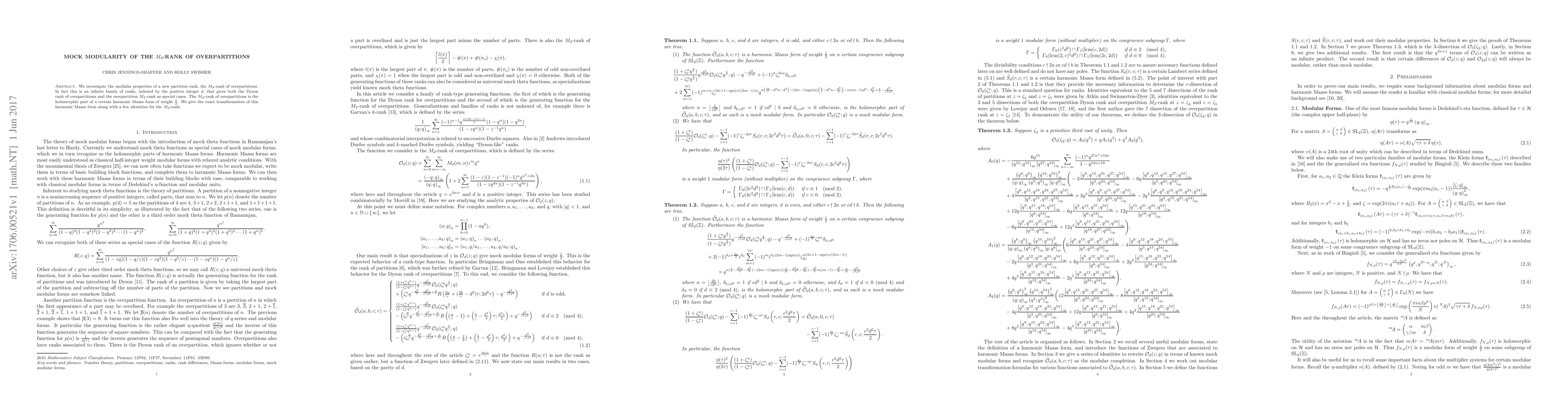 This paper explores the modular properties of the $M_d$-rank of overpartitions, an infinite family of ranks indexed by $d$, which includes the Dyson rank and $M_2$-rank as special cases. The authors provide the exact transformation of the associated harmonic Maass form and derive several identities for the $M_d$-rank.