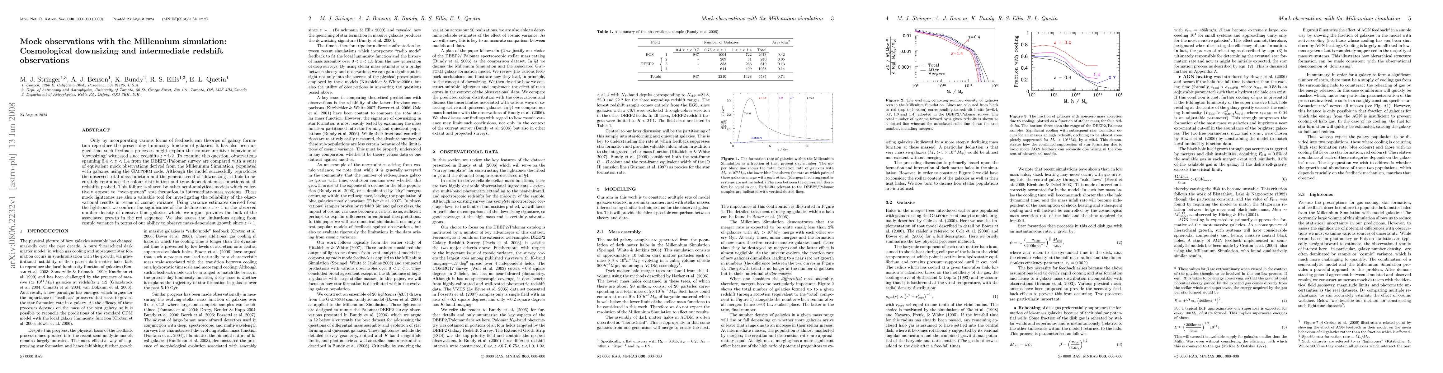 Only by incorporating various forms of feedback can theories of galaxy formation reproduce the present-day luminosity function of galaxies. It has also been argued that such feedback processes might explain the counter-intuitive behaviour of "downsizing" witnessed since redshifts z=1-2. To examine this question, observations spanning 0.4 < z < 1.4 from the DEEP2/Palomar survey are compared with a suite of equivalent mock observations derived from the Millennium Simulation, populated with galaxies using the Galform code. Although the model successfully reproduces the observed total mass function and the general trend of downsizing, it fails to accurately reproduce the colour distribution and type-dependent mass functions at all redshifts probed. This failure is shared by other semi-analytical models which collectively appear to "over-quench" star formation in intermediate-mass systems. These mock lightcones are also a valuable tool for investigating the reliability of the observational results in terms of cosmic variance. Using variance estimates derived from the lightcones we confirm the significance of the decline since z=1 in the observed number density of massive blue galaxies which, we argue, provides the bulk of the associated growth in the red sequence. We also assess the limitations arising from cosmic variance in terms of our ability to observe mass-dependent growth since z=1.