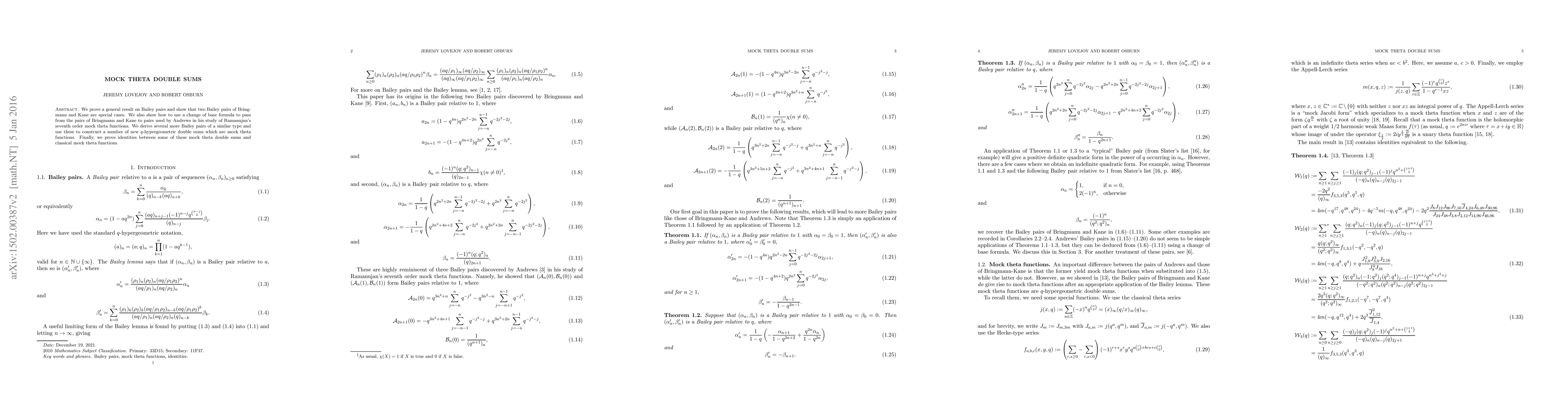 We prove a general result on Bailey pairs and show that two Bailey pairs of Bringmann and Kane are special cases. We also show how to use a change of base formula to pass from the pairs of Bringmann and Kane to pairs used by Andrews in his study of Ramanujan's seventh order mock theta functions. We derive several more Bailey pairs of a similar type and use these to construct a number of new q-hypergeometric double sums which are mock theta functions. Finally, we prove identities between some of these mock theta double sums and classical mock theta functions.