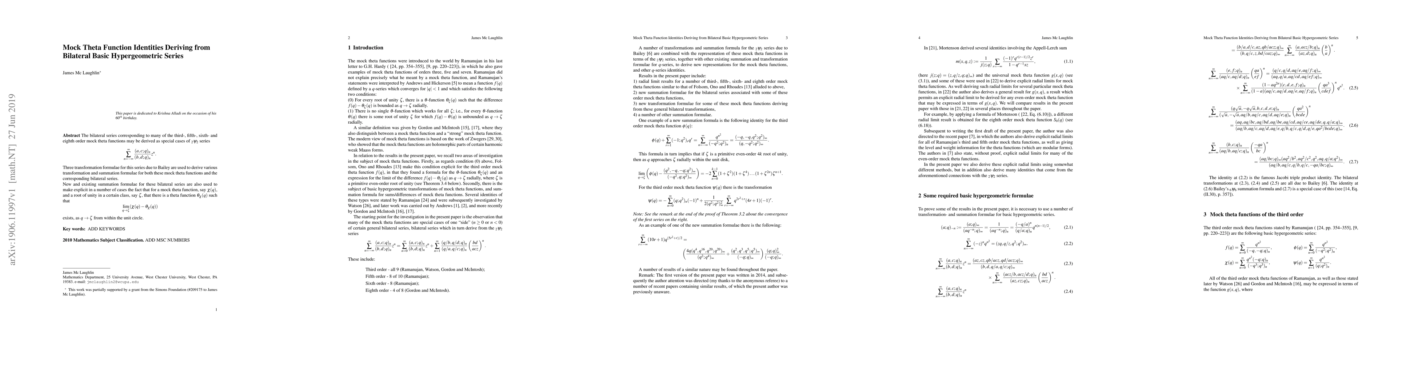 This paper derives transformation and summation formulae for mock theta functions using bilateral basic hypergeometric series and explores the relationship between these functions and corresponding theta functions.