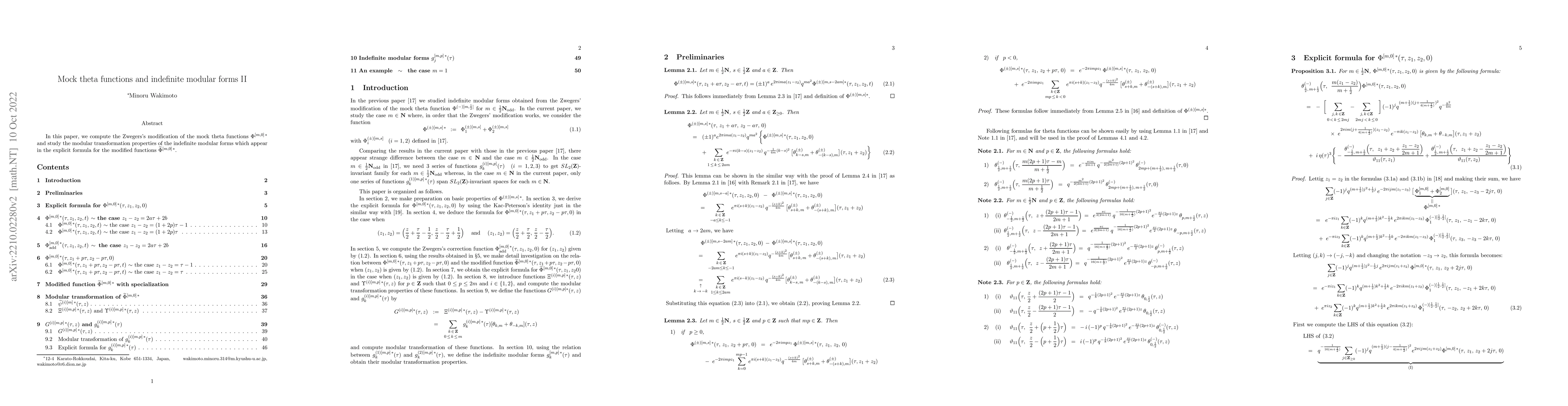 The paper presents detailed computations and transformations of mock theta functions, leading to explicit formulas for related indefinite modular forms and their transformations.