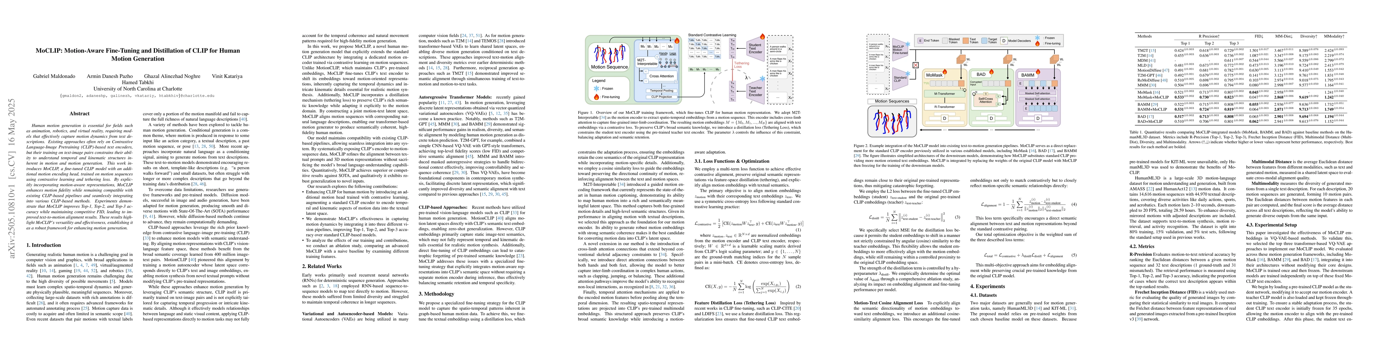 MoCLIP offers a robust framework for improving human motion generation, crucial for animation, robotics, and virtual reality, by explicitly incorporating motion-aware representations while maintaining compatibility with existing CLIP-based pipelines.