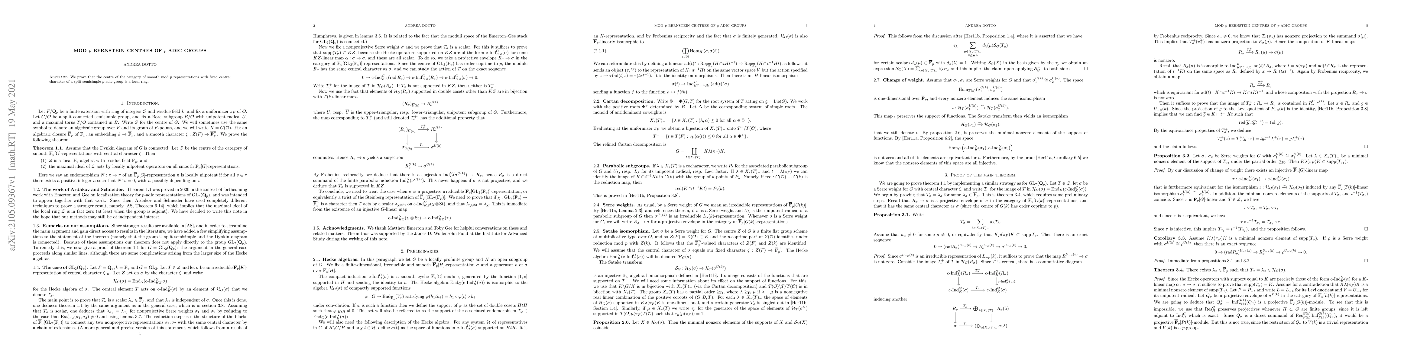 Summary: This paper establishes that the Bernstein centre for smooth mod $p$ representations of a split semisimple $p$-adic group, with a fixed central character, is a local ring. This result provides deeper insight into the structure of representation theory in the $p$-adic context.