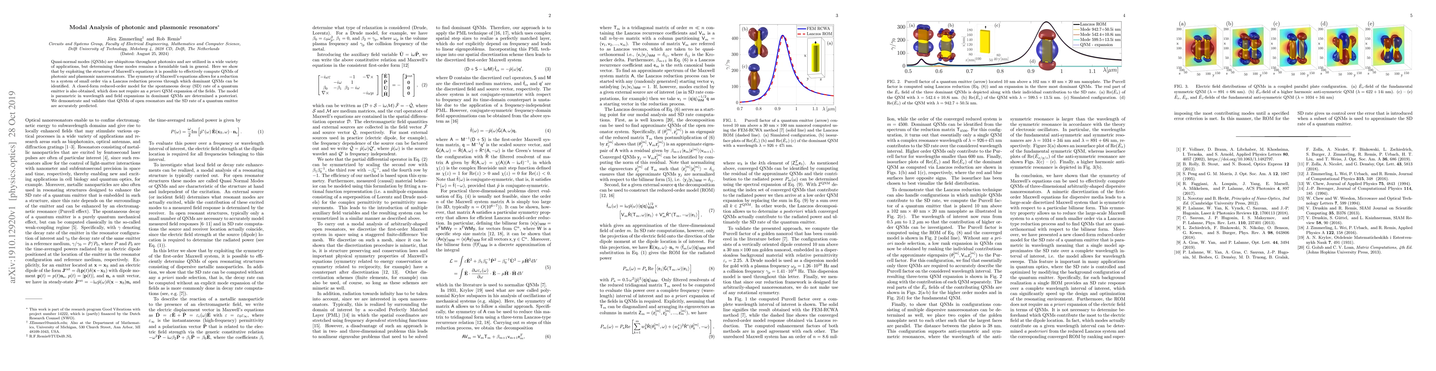 Quasi-normal modes (QNMs) are ubiquitous throughout photonics and are utilized in a wide variety of applications, but determining these modes remains a formidable task in general. Here we show that by exploiting the structure of Maxwell's equations it is possible to effectively compute QNMs of photonic and plasmonic nanoresonators. The symmetry of Maxwell's equations allows for a reduction to a system of small order via a Lanczos reduction process through which dominant QNMs can be identified. A closed-form reduced-order model for the spontaneous decay (SD) rate of a quantum emitter is also obtained, which does not require an a priori QNM expansion of the fields. The model is parametric in wavelength and field expansions in dominant QNMs are determined a posteriori. We demonstrate and validate that QNMs of open resonators and the SD rate of a quantum emitter are accurately predicted.