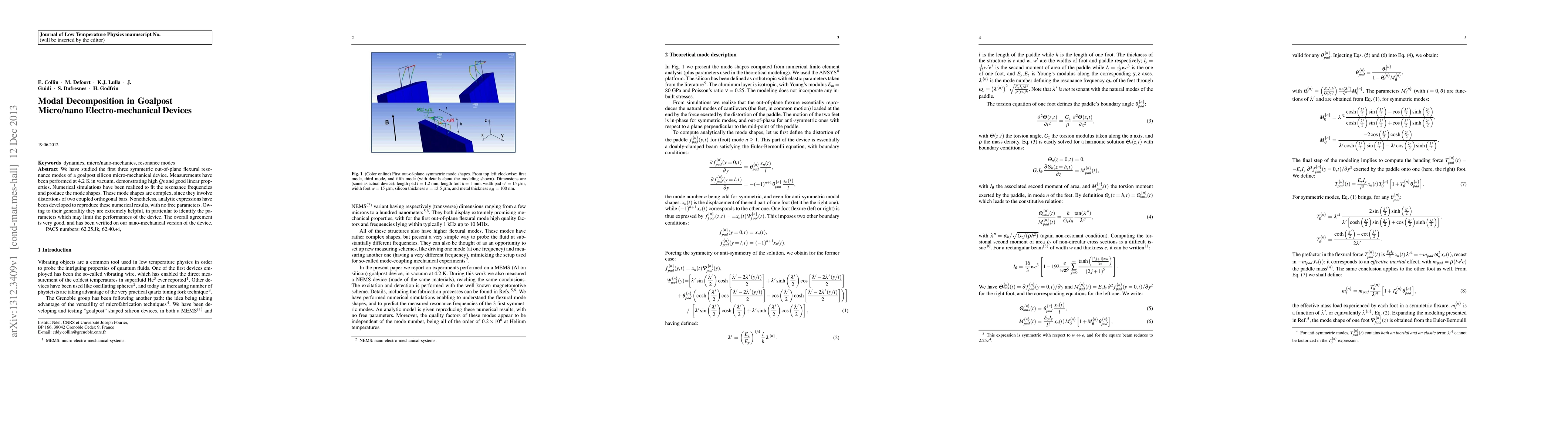 This paper investigates the first three symmetric out-of-plane flexural resonance modes of a goalpost silicon micro-mechanical device, demonstrating high Qs and linear properties. Analytical expressions were developed to match numerical simulations, aiding in identifying performance-limiting parameters for both micro and nano-scale versions.