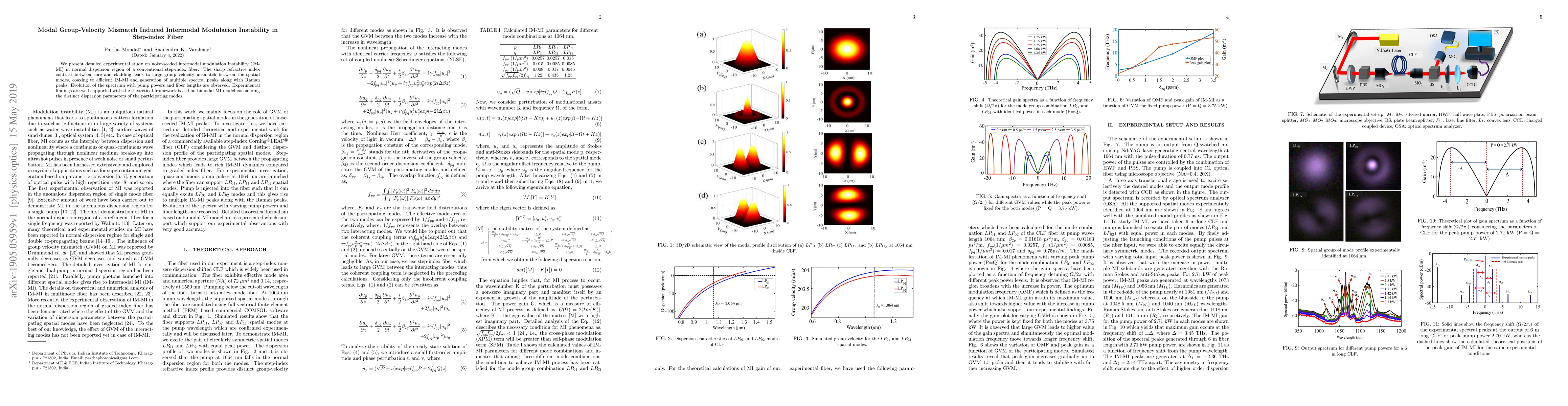 This paper experimentally investigates noise-seeded intermodal modulation instability (IM-MI) in a step-index fiber, revealing efficient IM-MI and multiple spectral peaks due to the large group velocity mismatch between core and cladding modes. Theoretical modeling aligns well with observed spectral evolution and Raman peaks.