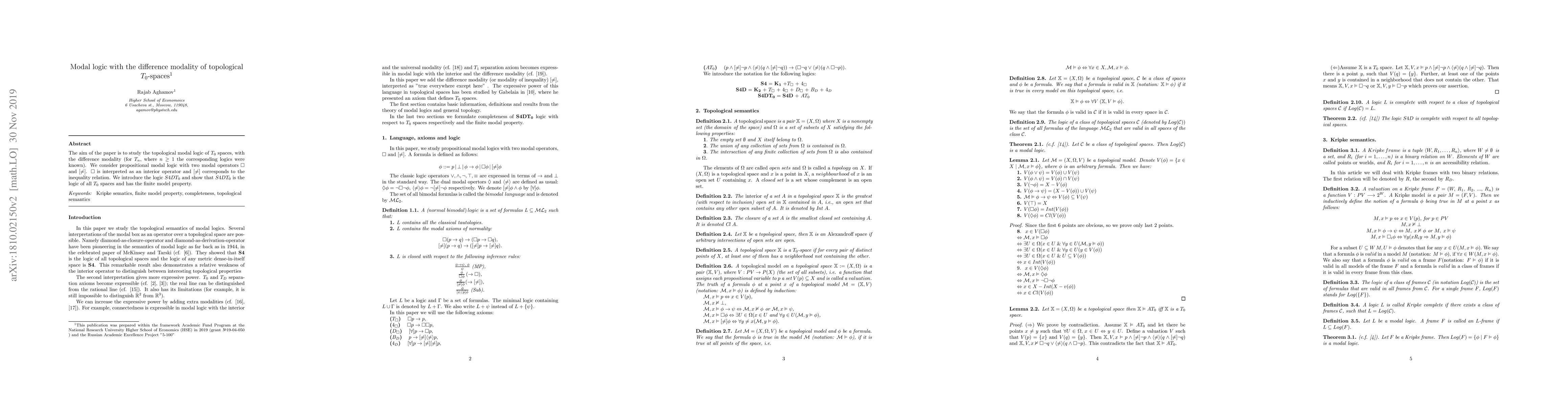 This paper introduces $S4DT_0$, a propositional modal logic for $T_0$ topological spaces, featuring modal operators for interior and inequality relations. It establishes that $S4DT_0$ is the logic of all $T_0$ spaces and possesses the finite model property.