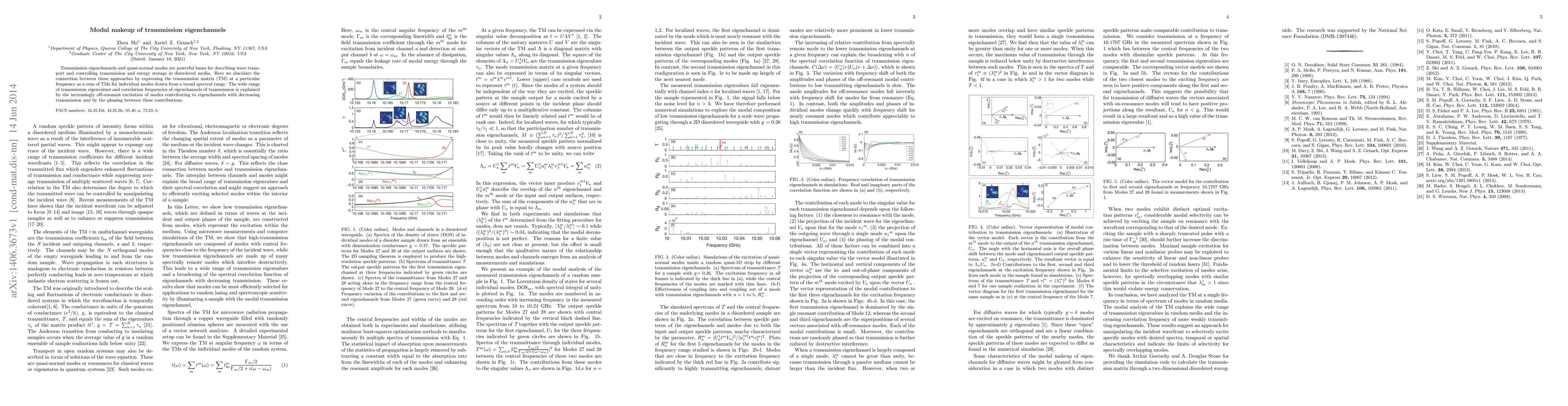 Transmission eigenchannels and quasi-normal modes are powerful bases for describing wave transport and controlling transmission and energy storage in disordered media. Here we elucidate the connection between these approaches by expressing the transmission matrix (TM) at a particular frequency as a sum of TMs for individual modes drawn from a broad spectral range. The wide range of transmission eigenvalues and correlation frequencies of eigenchannels of transmission is explained by the increasingly off-resonant excitation of modes contributing to eigenchannels with decreasing transmission and by the phasing between these contributions.