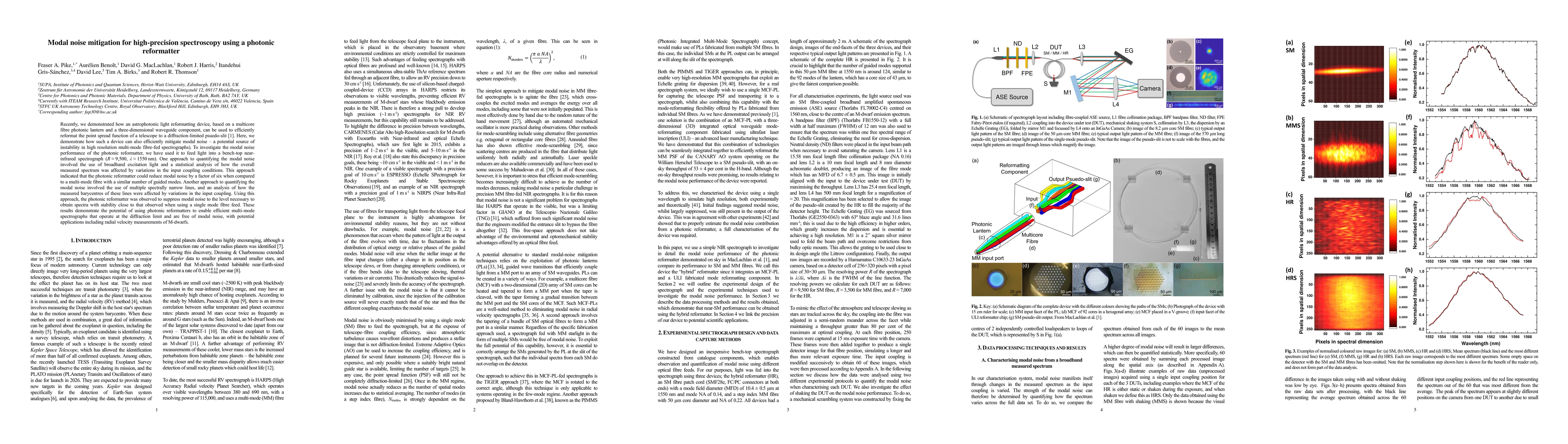 This paper demonstrates that a photonic reformatter, utilizing a multicore fibre and a waveguide, can effectively mitigate modal noise in high-precision spectroscopy, achieving stability comparable to single-mode fibre systems. The device was shown to reduce modal noise by a factor of six, enabling multi-mode spectrographs to operate at diffraction limits.