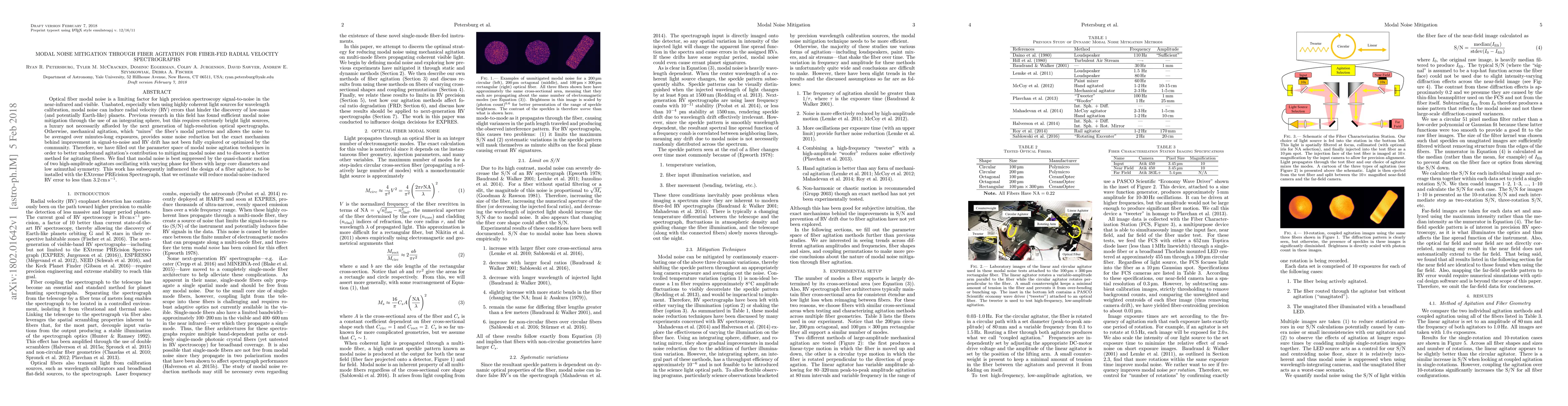 This paper investigates methods to mitigate modal noise in fiber-fed radial velocity spectrographs, focusing on the effectiveness of fiber agitation. The study finds that quasi-chaotic motion from two high-amplitude agitators oscillating with varying phase provides the best noise suppression, particularly for fibers with large core diameters and low azimuthal symmetry. This research informs the design of a new fiber agitator for the EXtreme PREcision Spectrograph, expected to reduce modal-noise-induced radial velocity errors to below 3.2 cm/s.