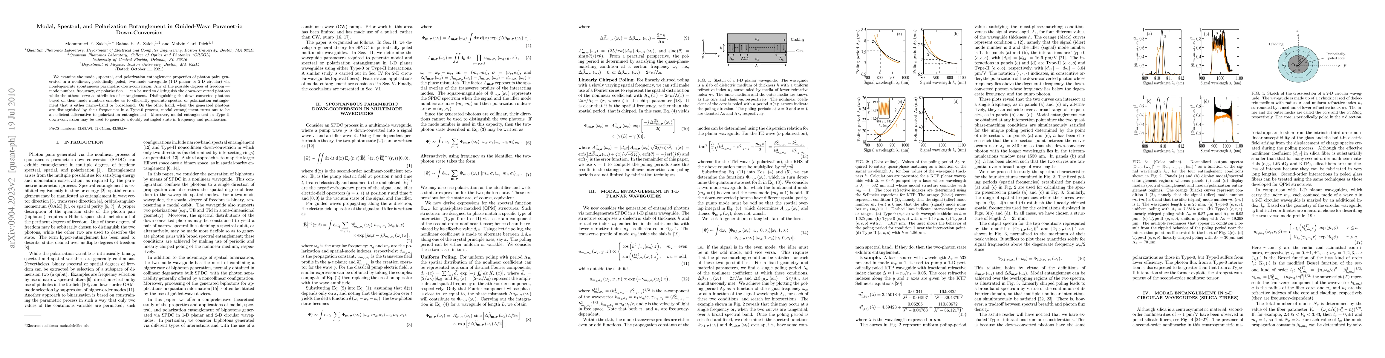 This paper investigates the entanglement properties of photon pairs produced in nonlinear waveguides via parametric down-conversion. It explores how modal, spectral, and polarization entanglement can be generated and controlled by distinguishing photons based on mode numbers, frequencies, or polarizations.