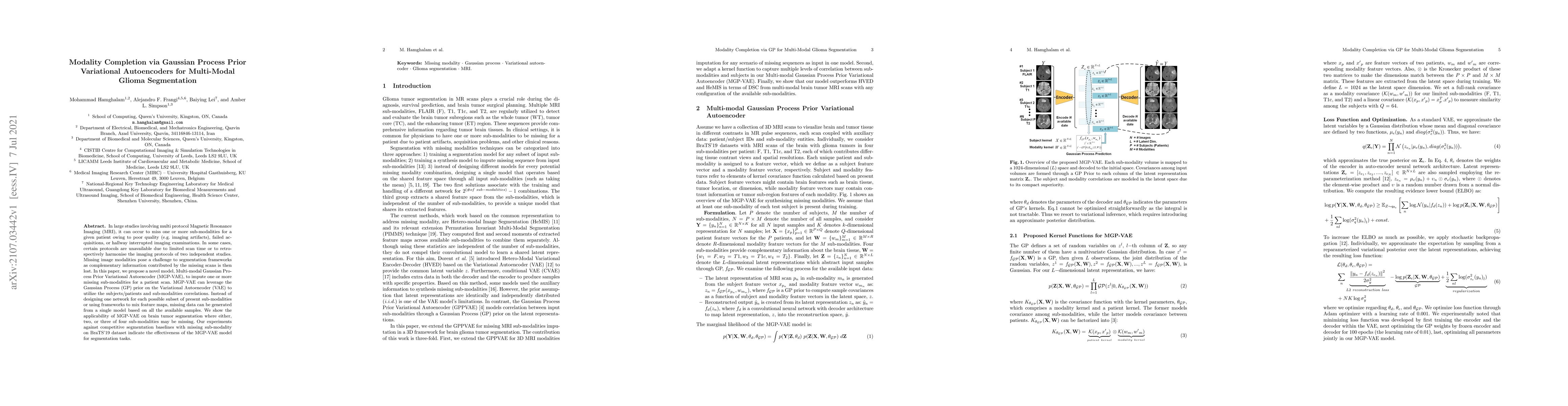 This paper proposes a Multi-modal Gaussian Process Prior Variational Autoencoder (MGP-VAE) to impute missing sub-modalities in multi-protocol MRI scans, leveraging Gaussian Process priors to utilize correlations among modalities. The model effectively segments brain tumors even when one or more modalities are missing, as demonstrated on the BraTS'19 dataset.