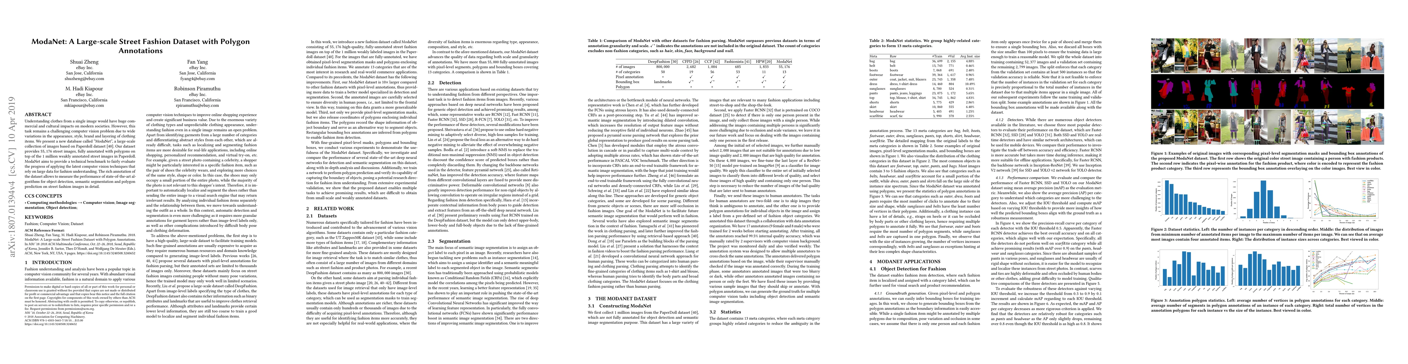 The paper presents ModaNet, a large-scale street fashion dataset with polygon annotations, built upon the Paperdoll dataset. It contains 55,176 images with detailed polygon annotations for clothing items, enabling detailed evaluation of computer vision techniques in fashion understanding.