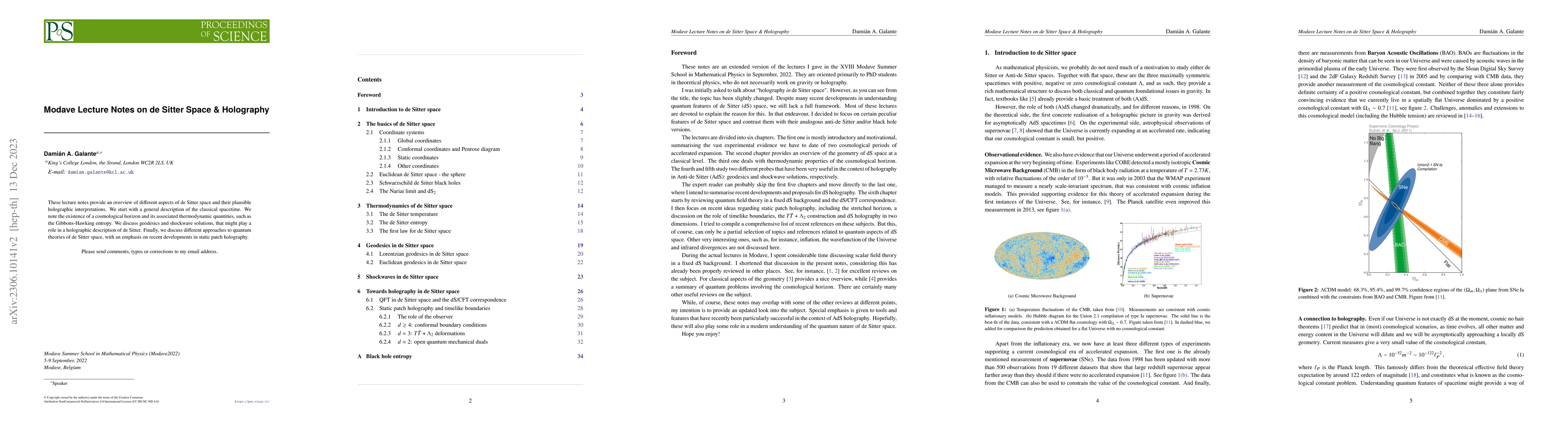 These lecture notes explore de Sitter space, highlighting its classical spacetime properties and cosmological horizon, and discuss geodesics and shockwave solutions potentially relevant for holographic interpretations. The focus is also on recent advances in static patch holography for quantum theories of de Sitter space.