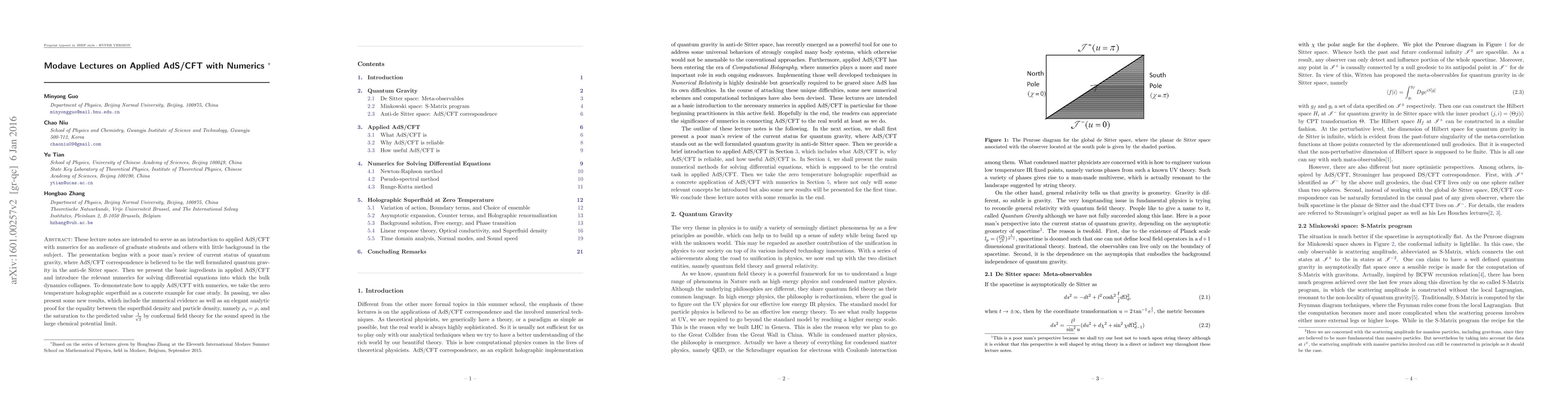 These lecture notes are intended to serve as an introduction to applied AdS/CFT with numerics for an audience of graduate students and others with little background in the subject. The presentation begins with a poor man's review of current status of quantum gravity, where AdS/CFT correspondence is believed to be the well formulated quantum gravity in the anti-de Sitter space. Then we present the basic ingredients in applied AdS/CFT and introduce the relevant numerics for solving differential equations into which the bulk dynamics collapses. To demonstrate how to apply AdS/CFT with numerics, we take the zero temperature holographic superfluid as a concrete example for case study. In passing, we also present some new results, which include the numerical evidence as well as an elegant analytic proof for the equality between the superfluid density and particle density, namely $\rho_s=\rho$, and the saturation to the predicted value $\frac{1}{\sqrt{2}}$ by conformal field theory for the sound speed in the large chemical potential limit.