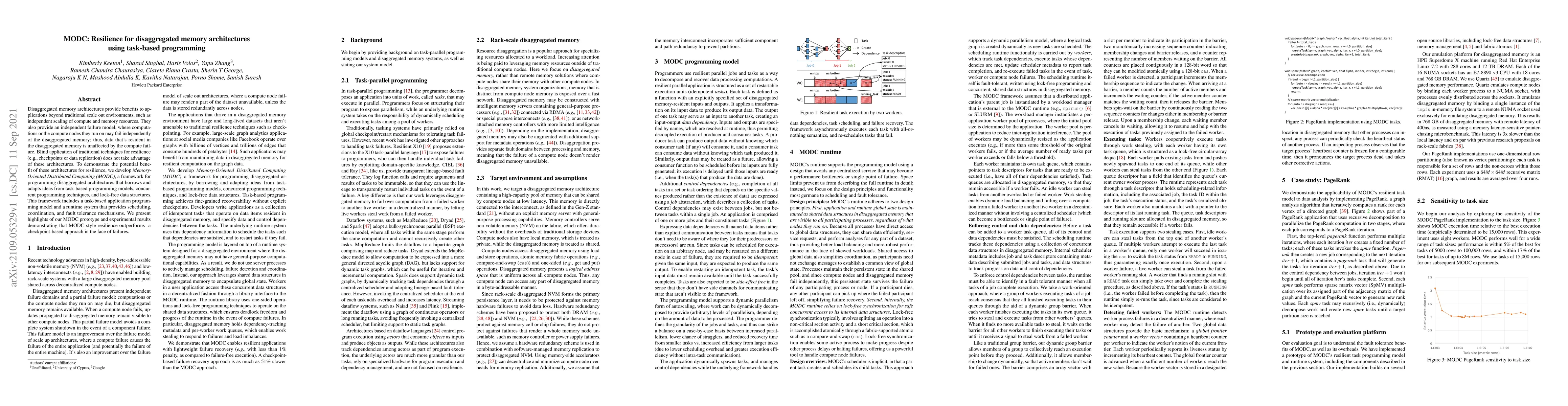The paper introduces MODC, a framework for programming disaggregated memory architectures that leverages task-based programming to enhance resilience. Experimental results show that MODC's fault tolerance mechanisms outperform traditional checkpoint-based approaches in handling failures.