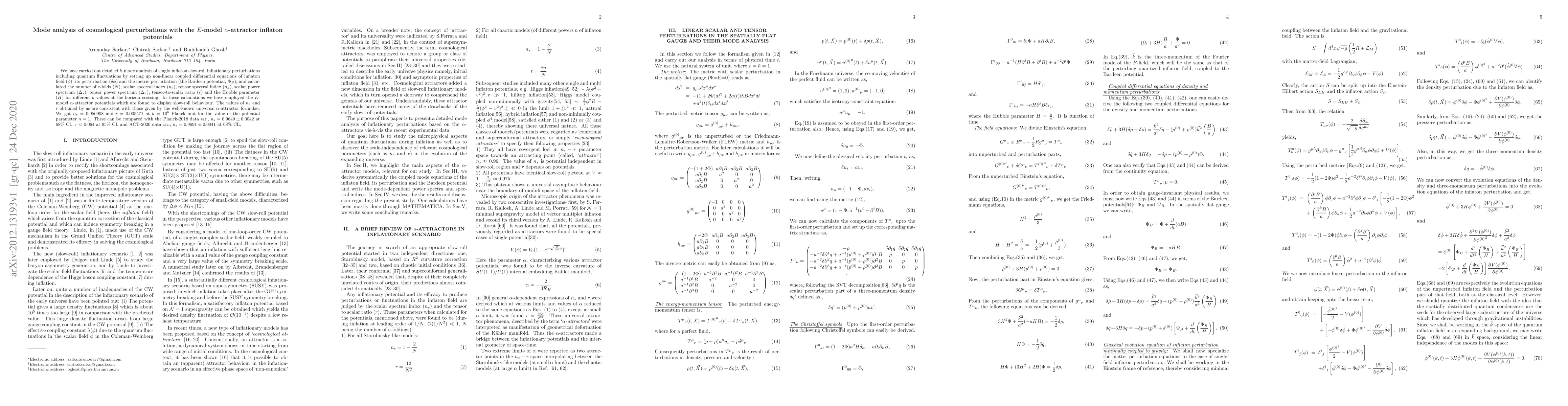 This paper conducts a $k$-mode analysis of inflationary perturbations using the $E$-model $\alpha$-attractor potentials, deriving key cosmological parameters including the scalar spectral index ($n_s = 0.956908$) and tensor-to-scalar ratio ($r = 0.005571$), which are consistent with universal $\alpha$-attractor formulae and observational data from Planck-2018 and ACT-2020.
