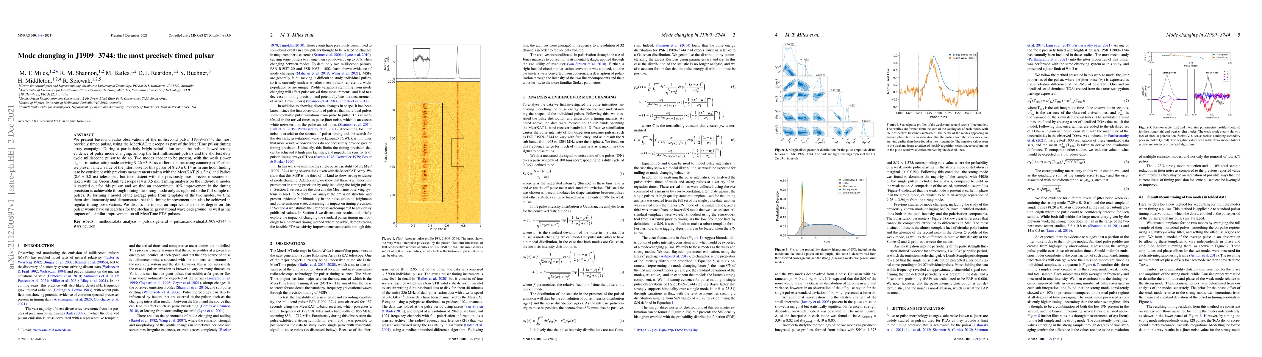 We present baseband radio observations of the millisecond pulsar J1909$-$3744, the most precisely timed pulsar, using the MeerKAT telescope as part of the MeerTime pulsar timing array campaign. During a particularly bright scintillation event the pulsar showed strong evidence of pulse mode changing, among the first millisecond pulsars and the shortest duty cycle millisecond pulsar to do so. Two modes appear to be present, with the weak (lower signal-to-noise ratio) mode arriving $9.26$ $\pm 3.94$ $\mu$s earlier than the strong counterpart. Further, we present a new value of the jitter noise for this pulsar of $8.20 \pm 0.14$ ns in one hour, finding it to be consistent with previous measurements taken with the MeerKAT ($9 \pm 3$ ns) and Parkes ($8.6 \pm 0.8$ ns) telescopes, but inconsistent with the previously most precise measurement taken with the Green Bank telescope ($14 \pm 0.5$ ns). Timing analysis on the individual modes is carried out for this pulsar, and we find an approximate $10\%$ improvement in the timing precision is achievable through timing the strong mode only as opposed to the full sample of pulses. By forming a model of the average pulse from templates of the two modes, we time them simultaneously and demonstrate that this timing improvement can also be achieved in regular timing observations. We discuss the impact an improvement of this degree on this pulsar would have on searches for the stochastic gravitational wave background, as well as the impact of a similar improvement on all MeerTime PTA pulsars.