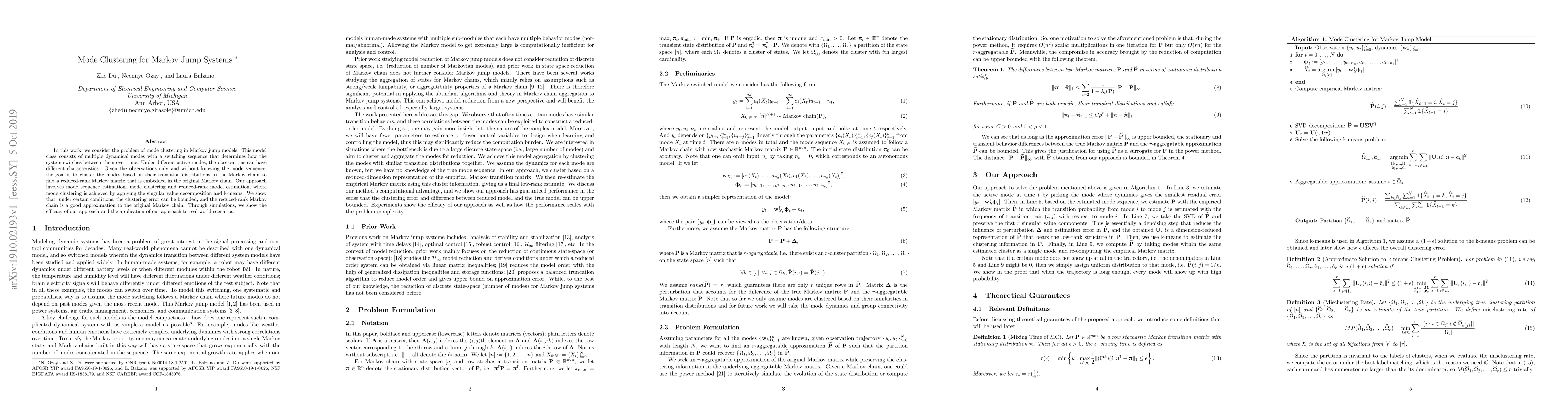 Researchers developed an approach to cluster modes in Markov jump systems, reducing complexity while maintaining accuracy, using a combination of mode sequence estimation, clustering, and reduced-rank model estimation.