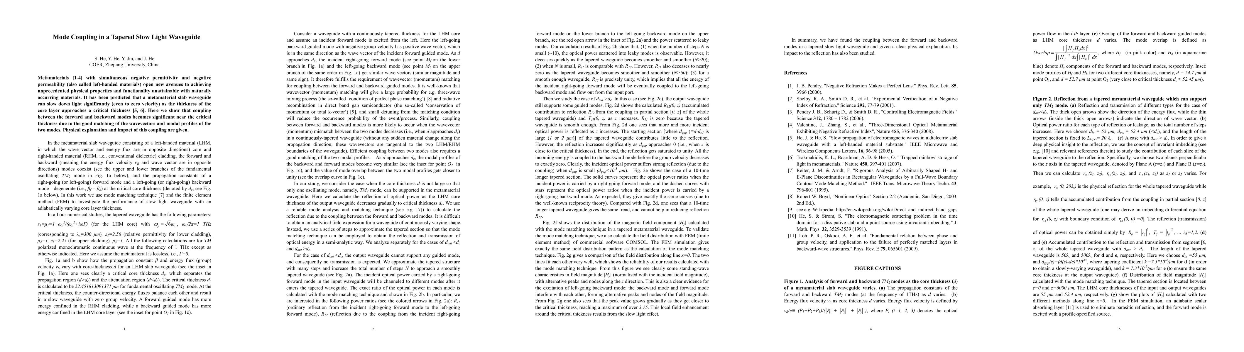 Metamaterials with simultaneous negative permittivity and negative permeability (also called left-handed materials) open new avenues to achieving unprecedented physical properties and functionality unattainable with naturally occurring materials. It has been predicted that a metamaterial slab waveguide can slow down light significantly (even to zero velocity) as the thickness of the core layer approaches a critical thickness. Here we show that coupling between the forward and backward modes becomes significant near the critical thickness due to the good matching of the wavevectors and modal profiles of the two modes. Physical explanation and impact of this coupling are given.
