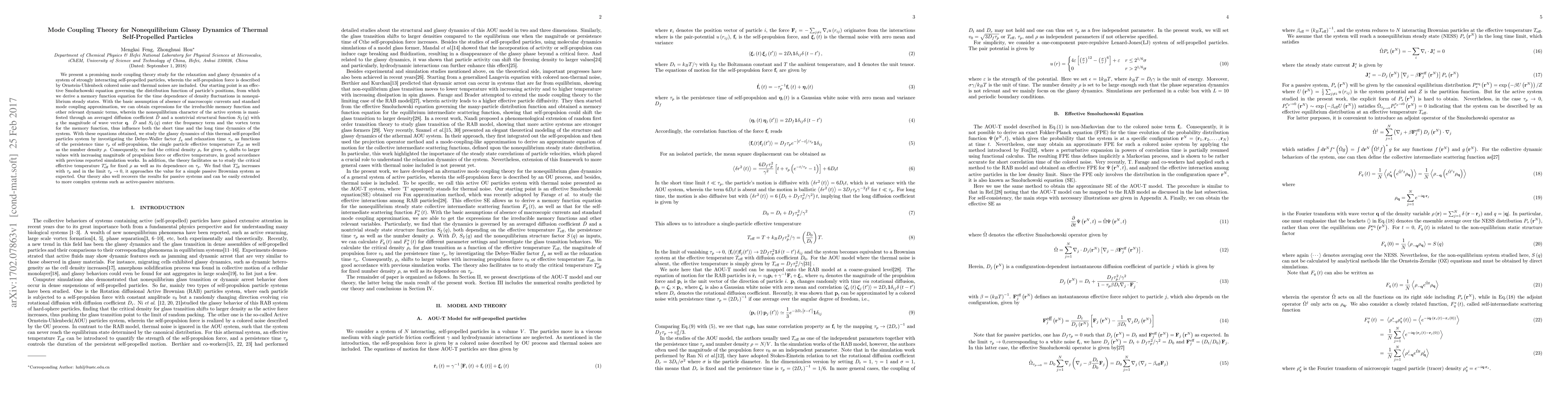 This paper develops a mode coupling theory to study the nonequilibrium glassy dynamics of self-propelled particles, deriving expressions for relaxation time and density fluctuations. The theory reveals how critical density and effective temperature depend on self-propulsion persistence time, aligning with simulation results.