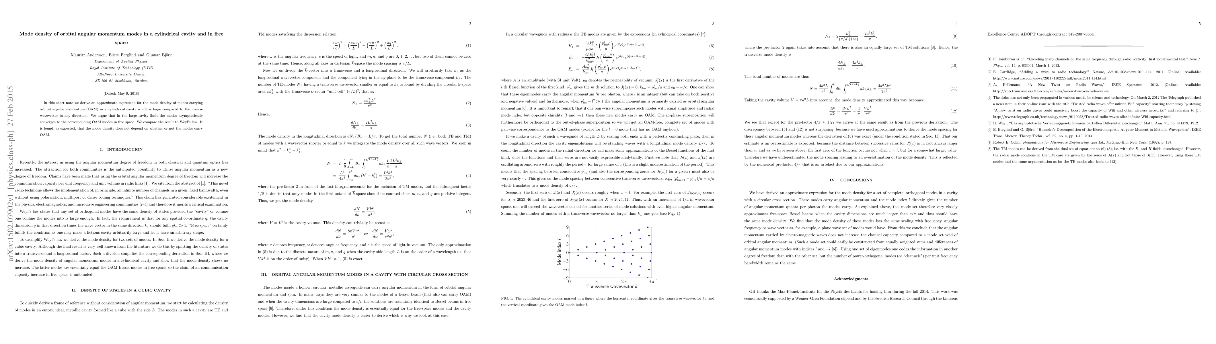 In this short note we derive an approximate expression for the mode density of modes carrying orbital angular momentum (OAM) in a cylindrical cavity which is large compared to the inverse wavevector in any direction. We argue that in the large cavity limit the modes asymptotically converges to the corresponding OAM modes in free space. We compare the result to Weyl's law. It is found, as expected, that the mode density does not depend on whether or not the modes carry OAM.